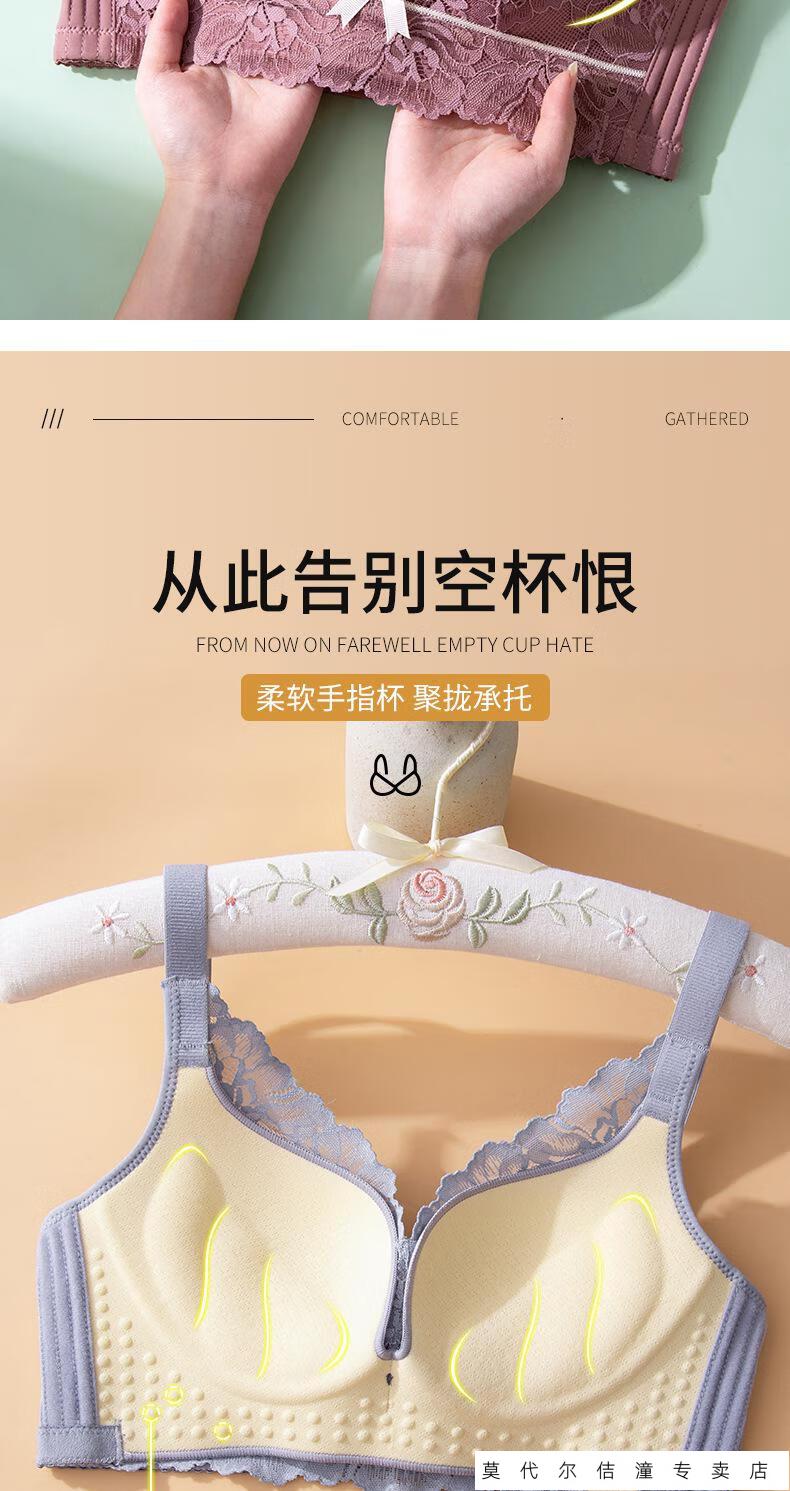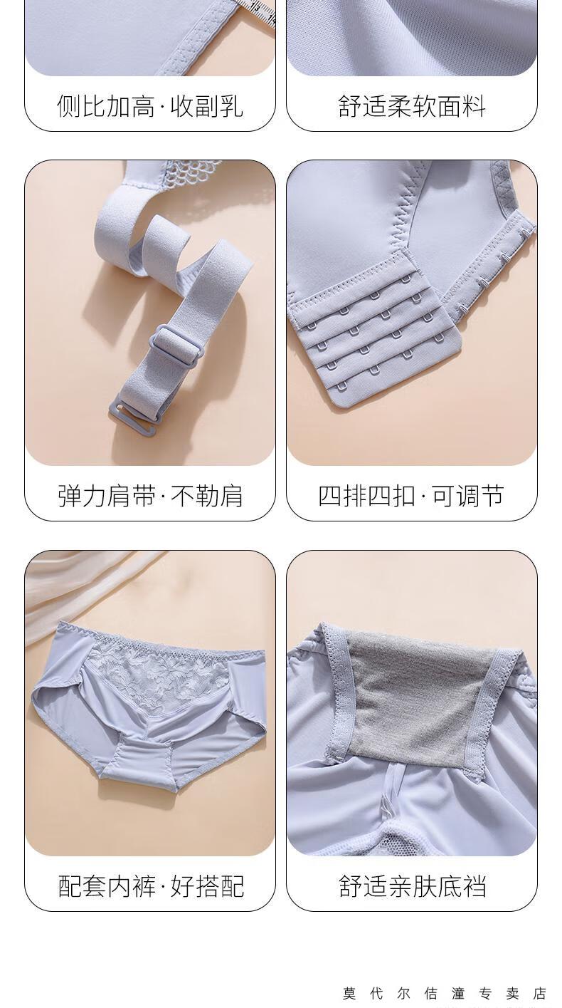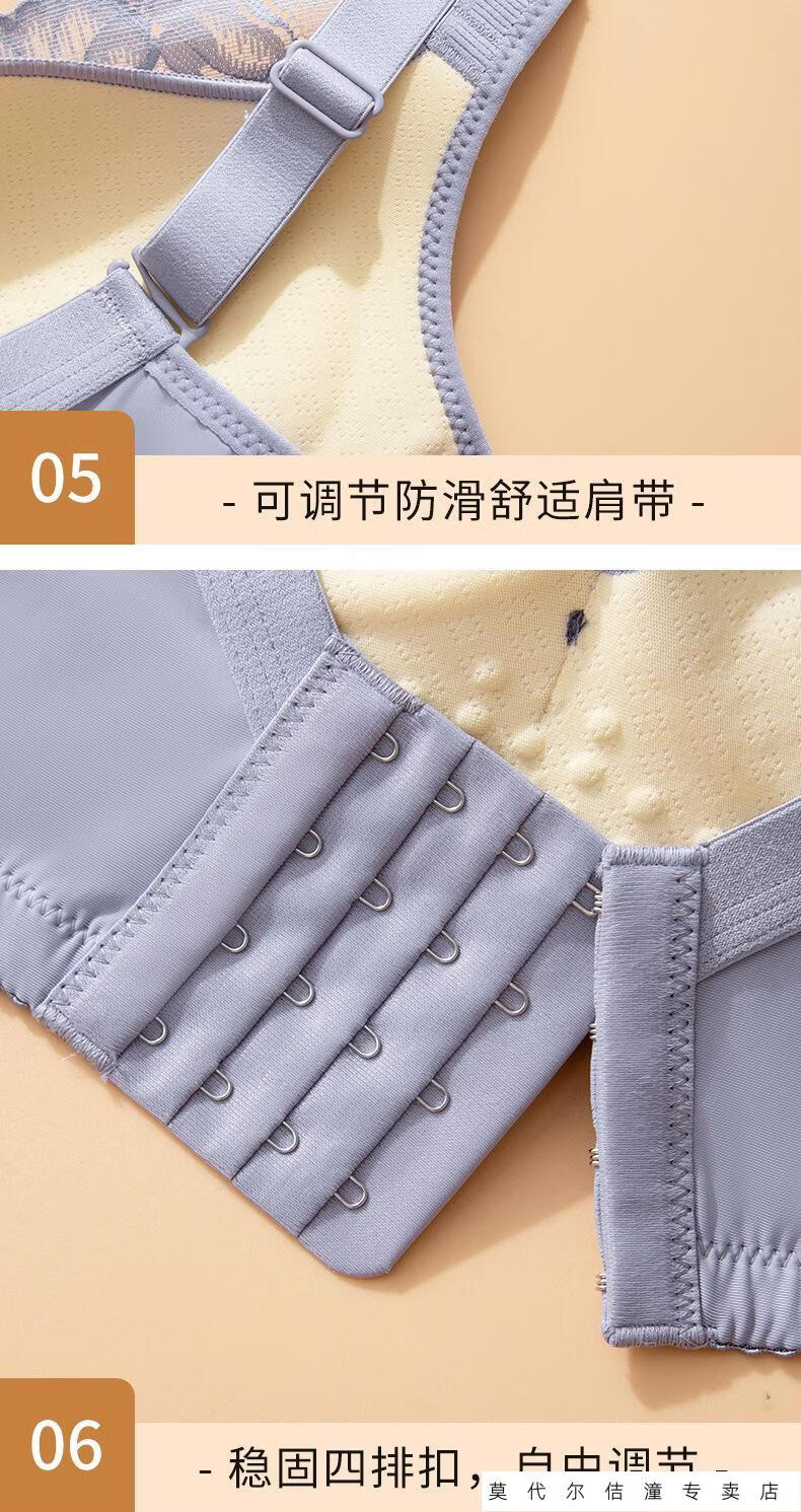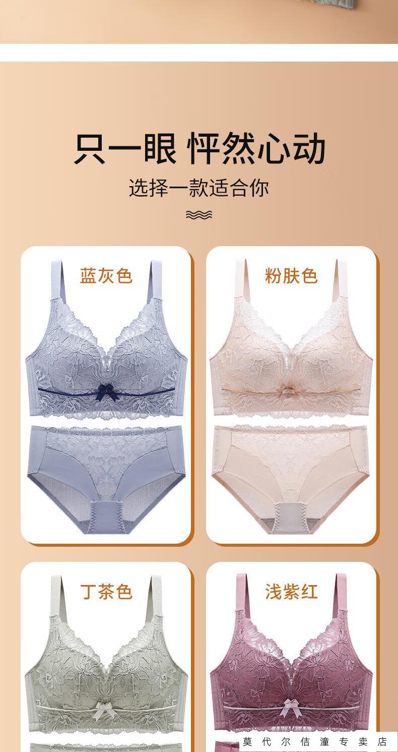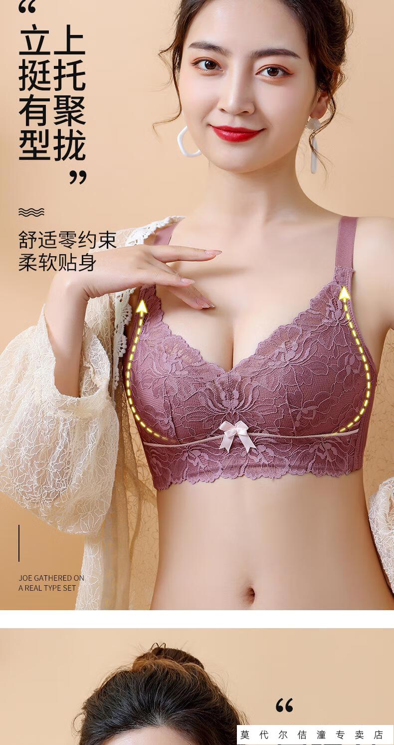 Ropa interior cómoda modal de cuatro botonadura, sin aros, pechos pequeños, push-up, pechos auxiliares, sujetador antiflacidez, conjunto de sujetador de encaje, conjunto morado 90C 40