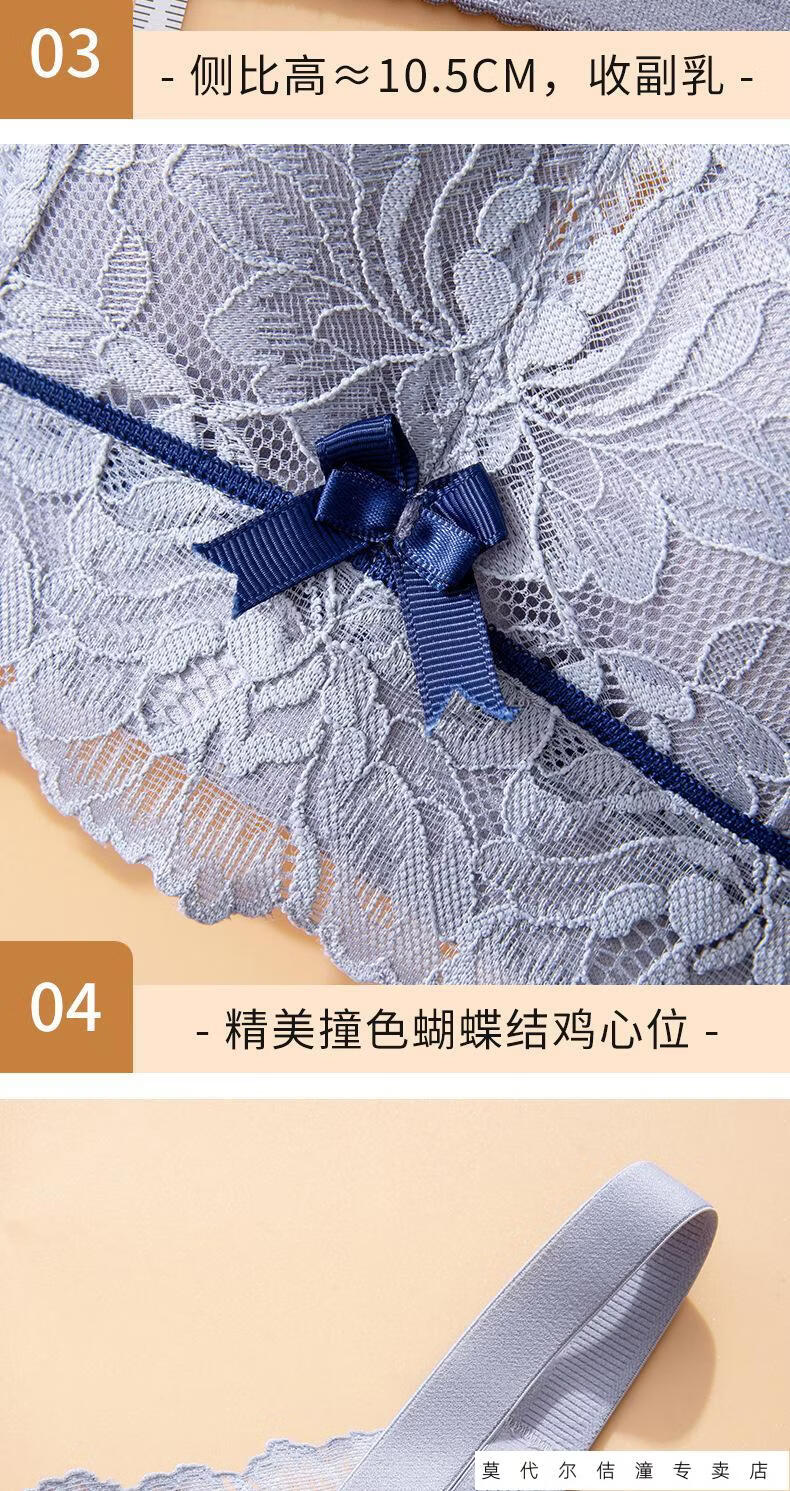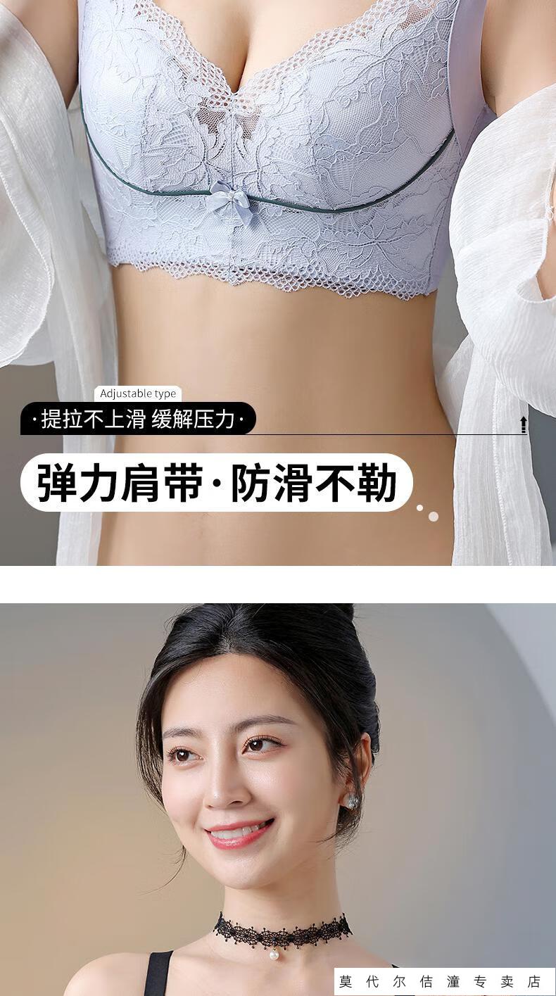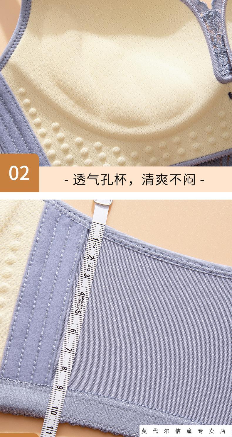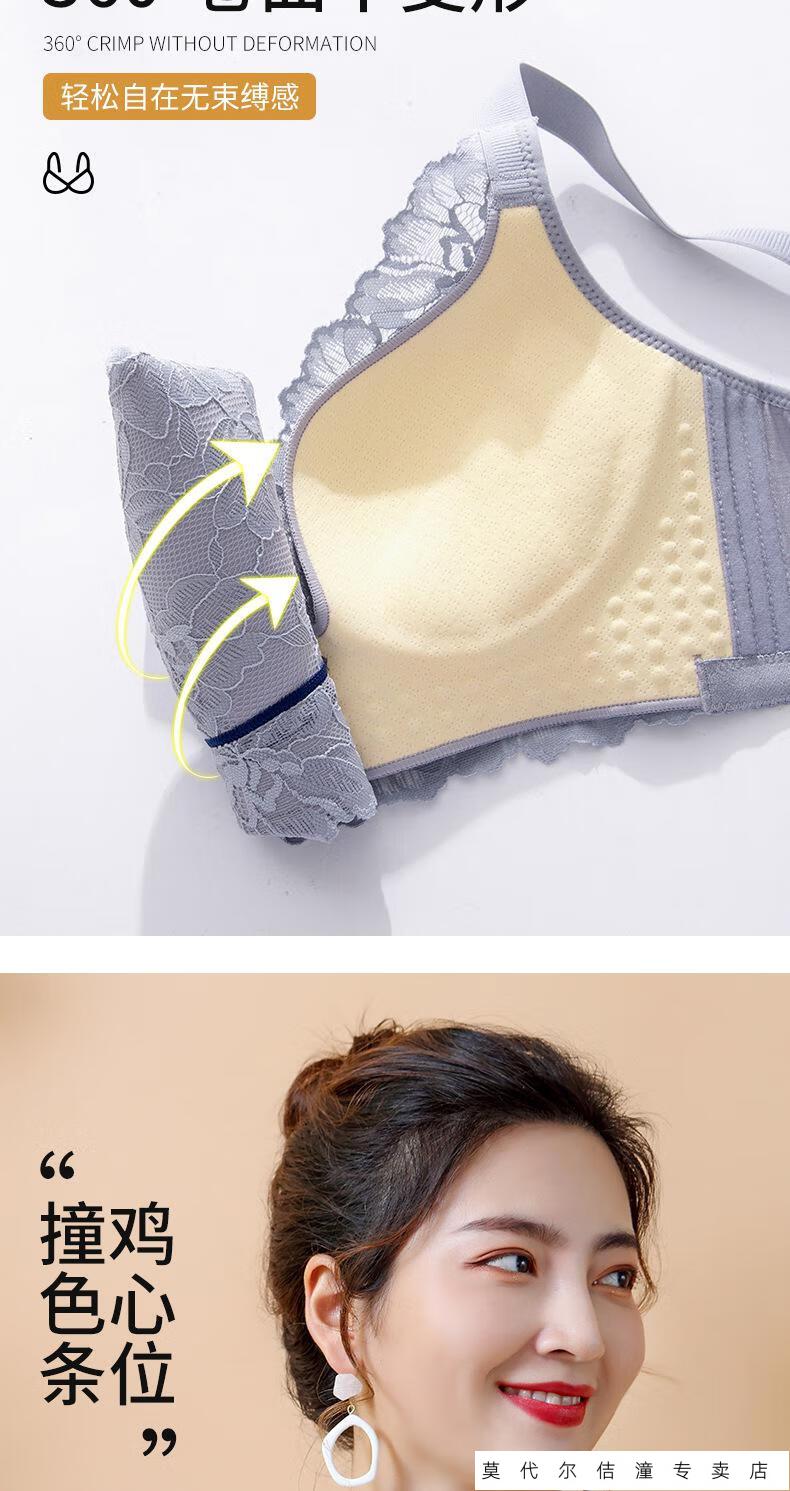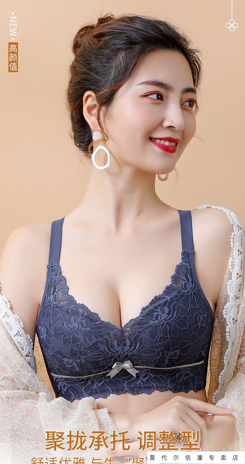Ropa interior cómoda modal de cuatro botonadura, sin aros, pechos pequeños, push-up, pechos auxiliares, sujetador antiflacidez, conjunto de sujetador de encaje, conjunto morado 90C 40