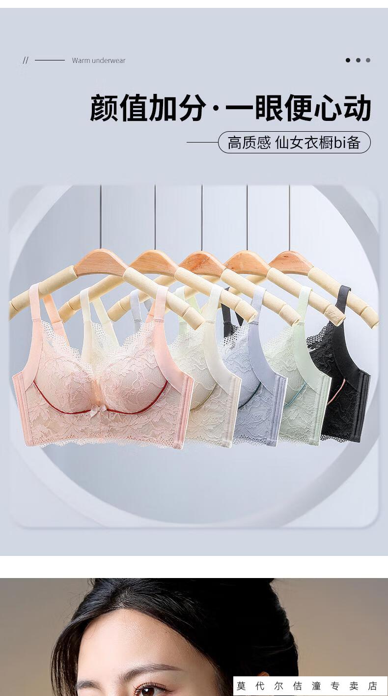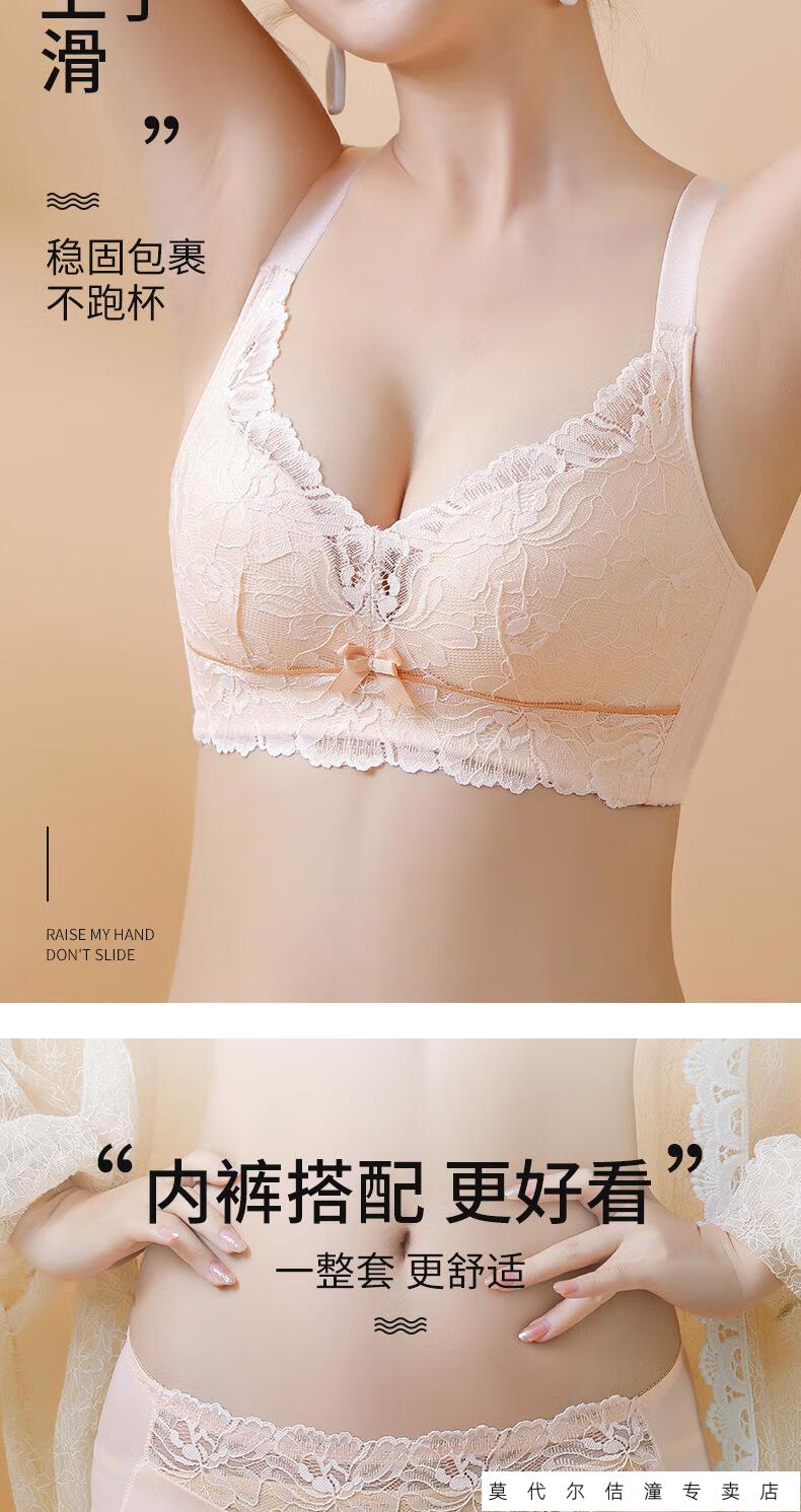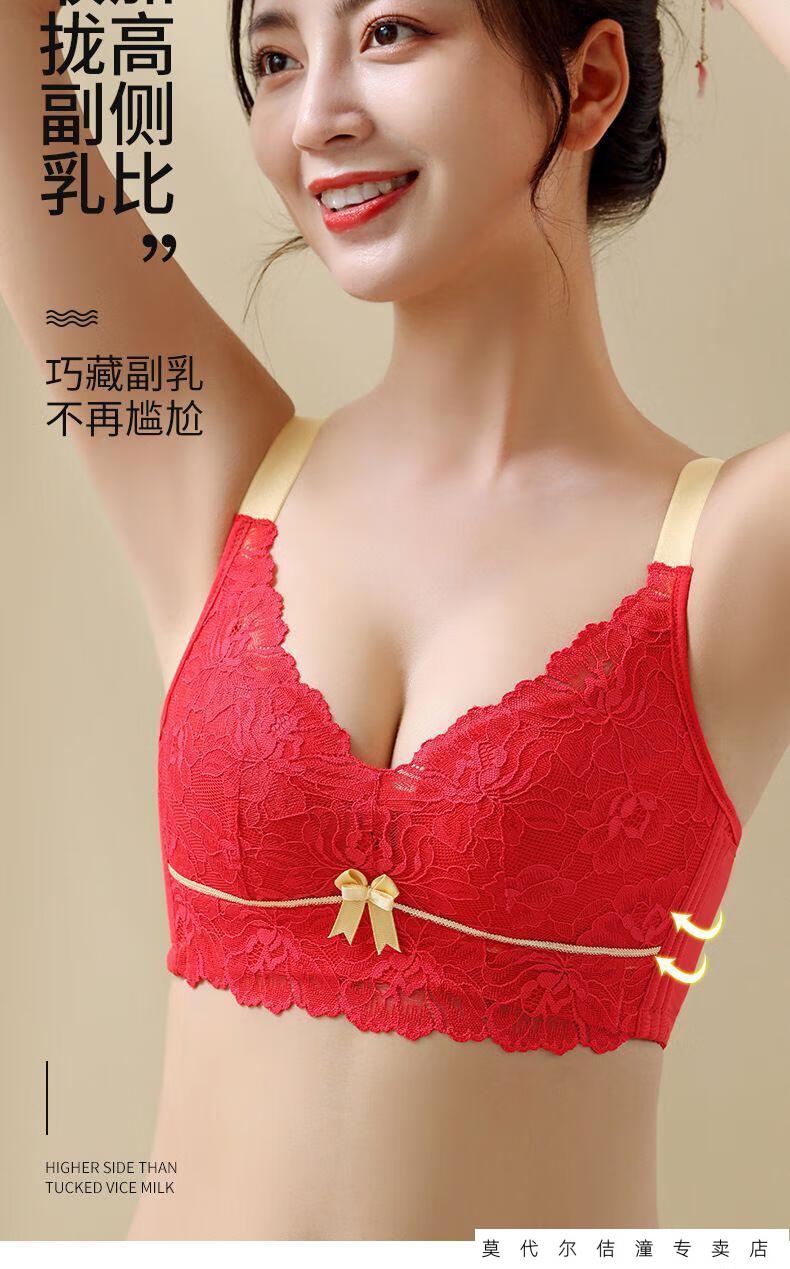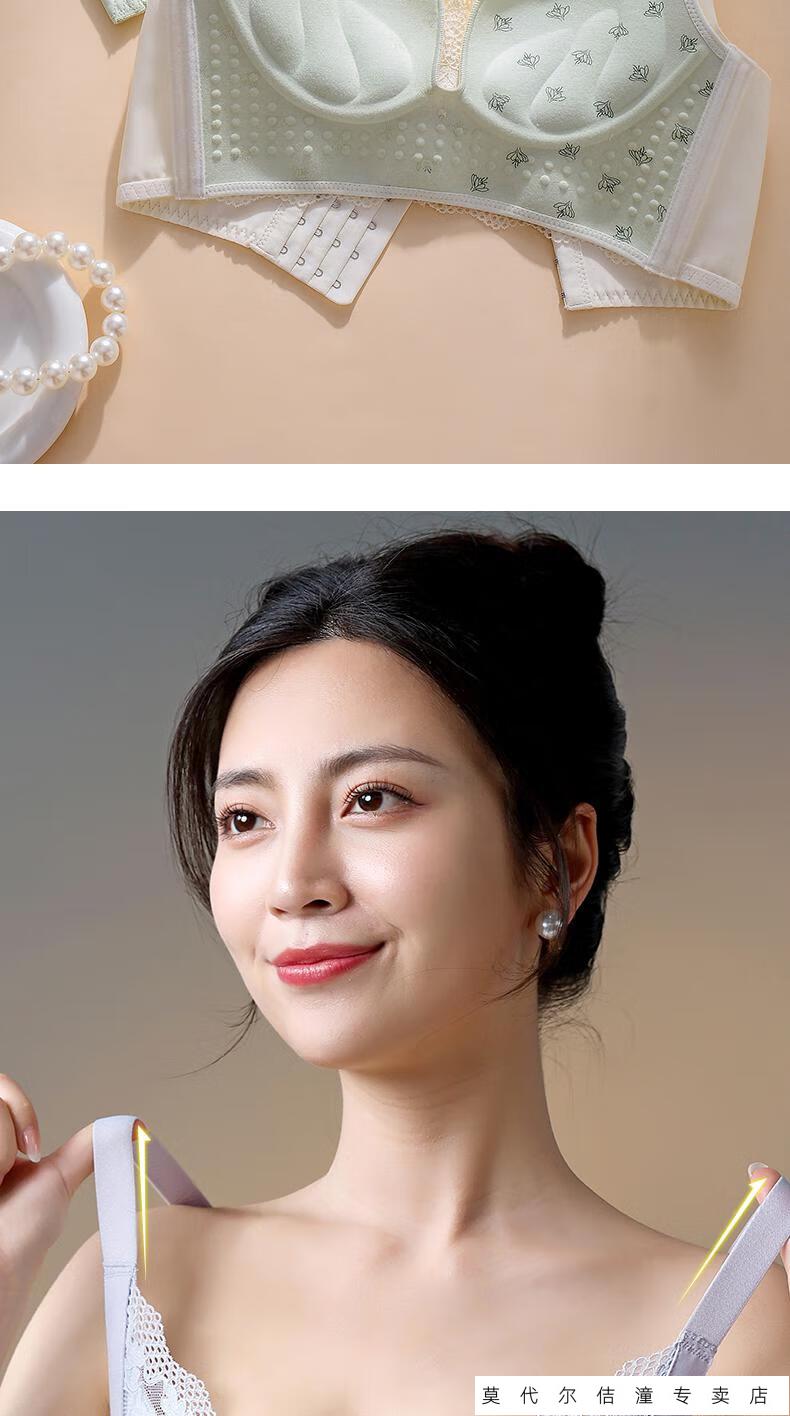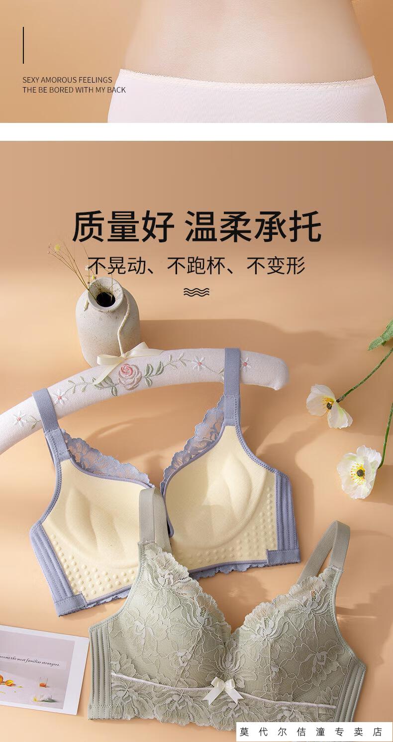 Ropa interior cómoda modal de cuatro botonadura, sin aros, pechos pequeños, push-up, pechos auxiliares, sujetador antiflacidez, conjunto de sujetador de encaje, conjunto morado 90C 40