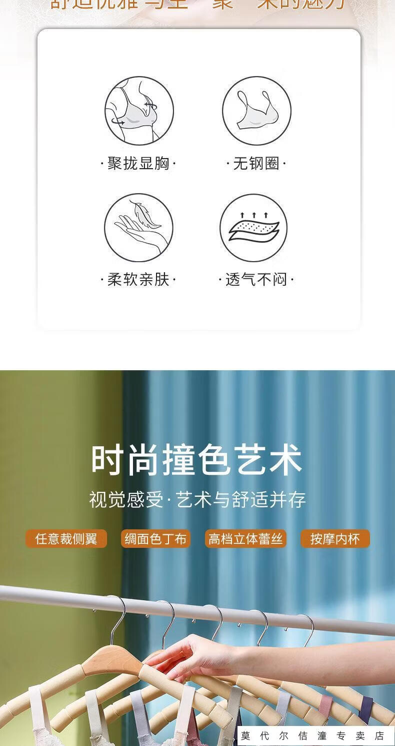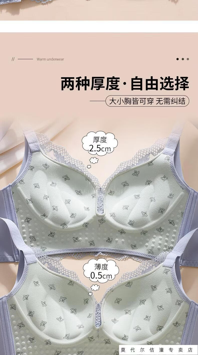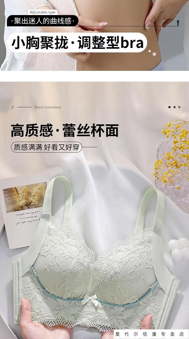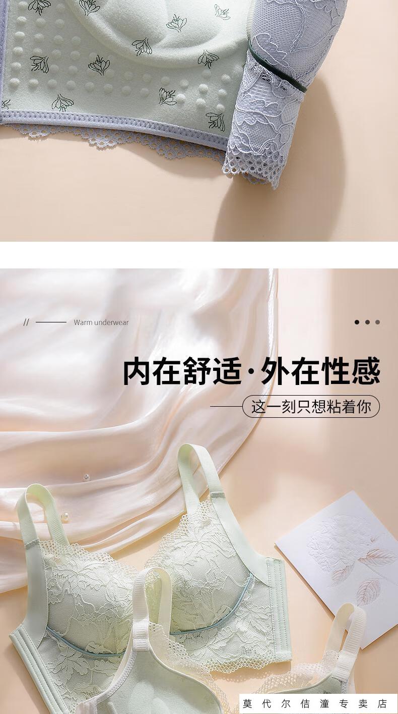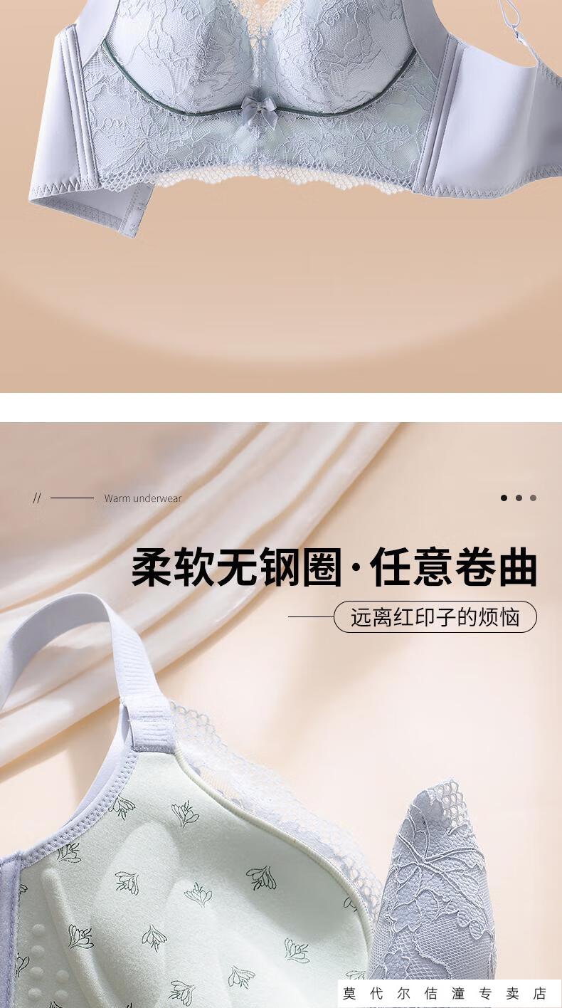 Ropa interior cómoda modal de cuatro botonadura, sin aros, pechos pequeños, push-up, pechos auxiliares, sujetador antiflacidez, conjunto de sujetador de encaje, conjunto morado 90C 40