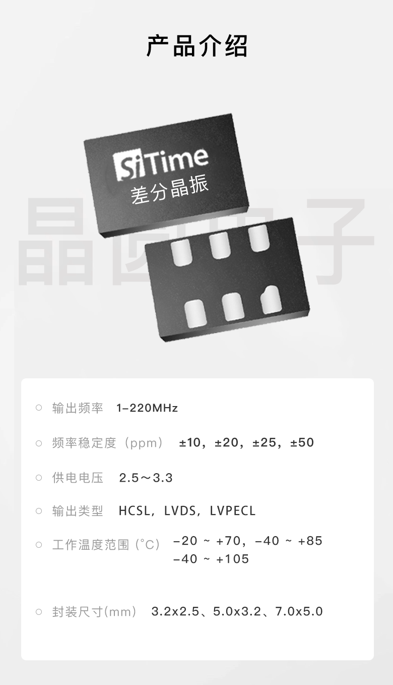 26MHz differential crystal oscillator SIT9120/9121/9365/9366 LVPECL/LVDS/HCSL HCSL 7050 5+ 0.6ps