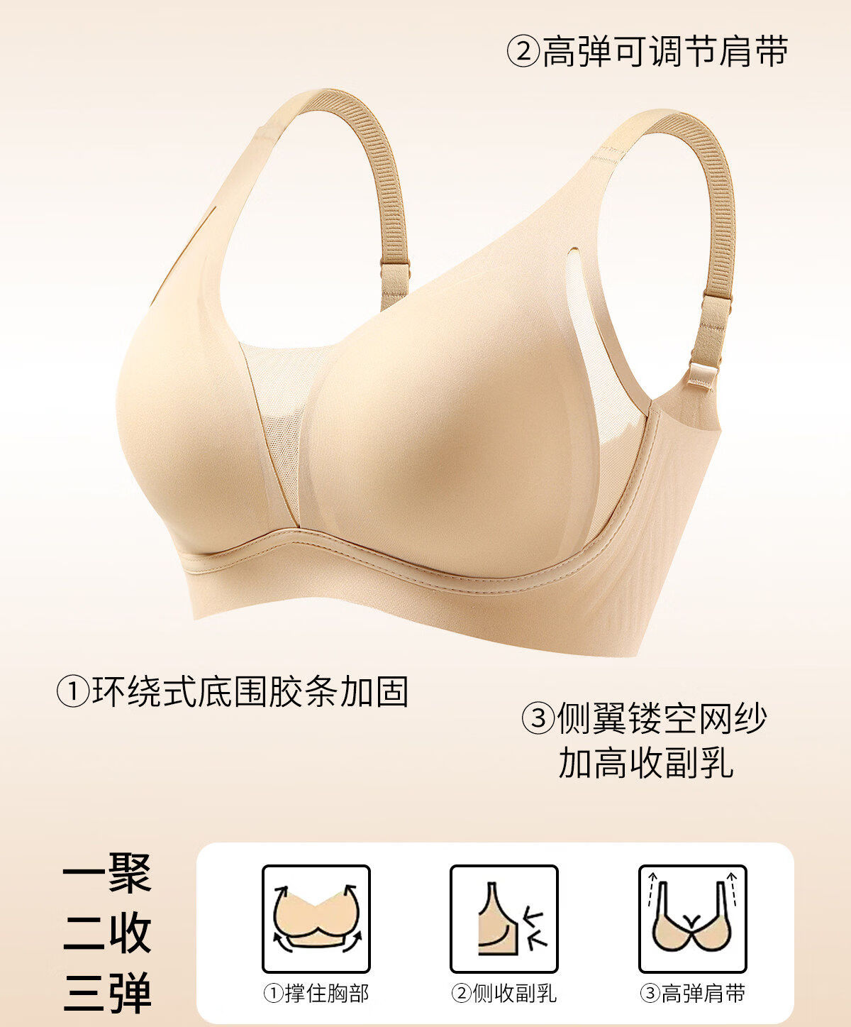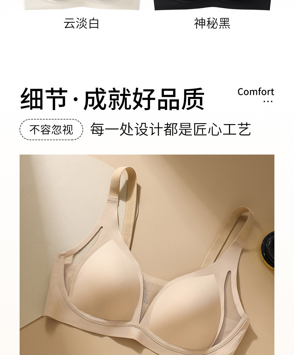 Urban Beauty Sous-vêtements de base sans couture pour femmes Rassemblement de petits seins et prévention secondaire des seins Anti-affaissement 2026 Nouveau soutien-gorge pull-up sans fil Peau invisible + Nuages ​​blancs Sexy V profond Sensation nue Coupe S 32/70ABC Poids Environ 80-95 Jin Jin est égal à 0,5 kg