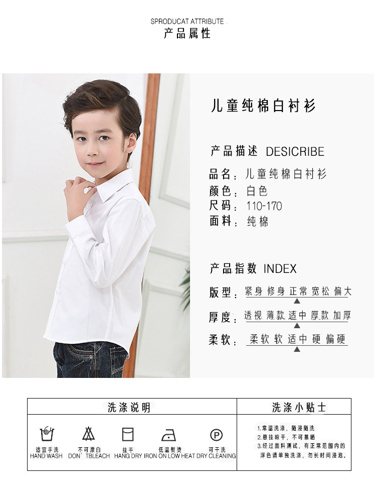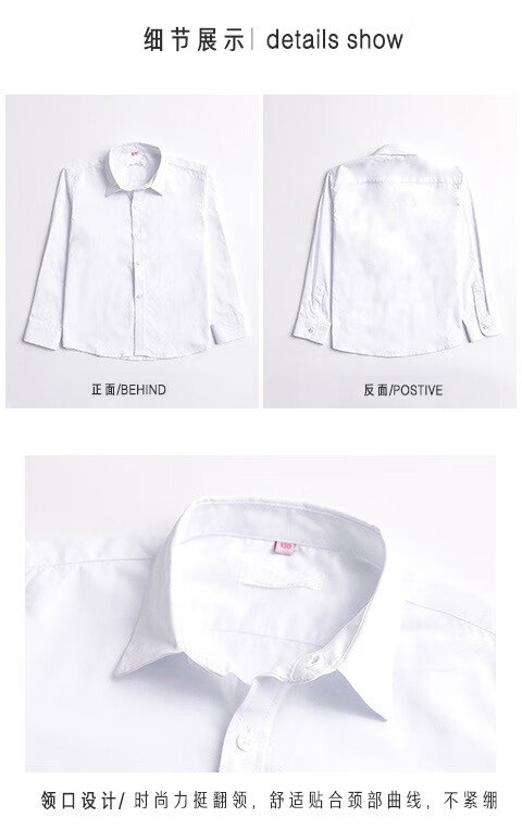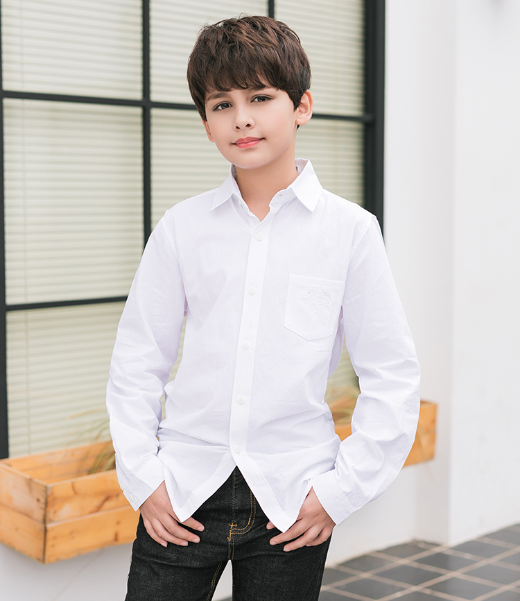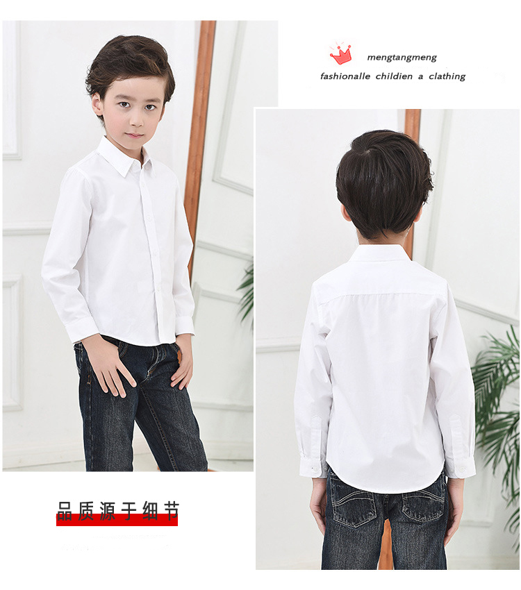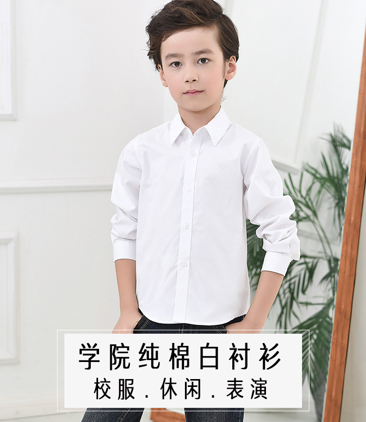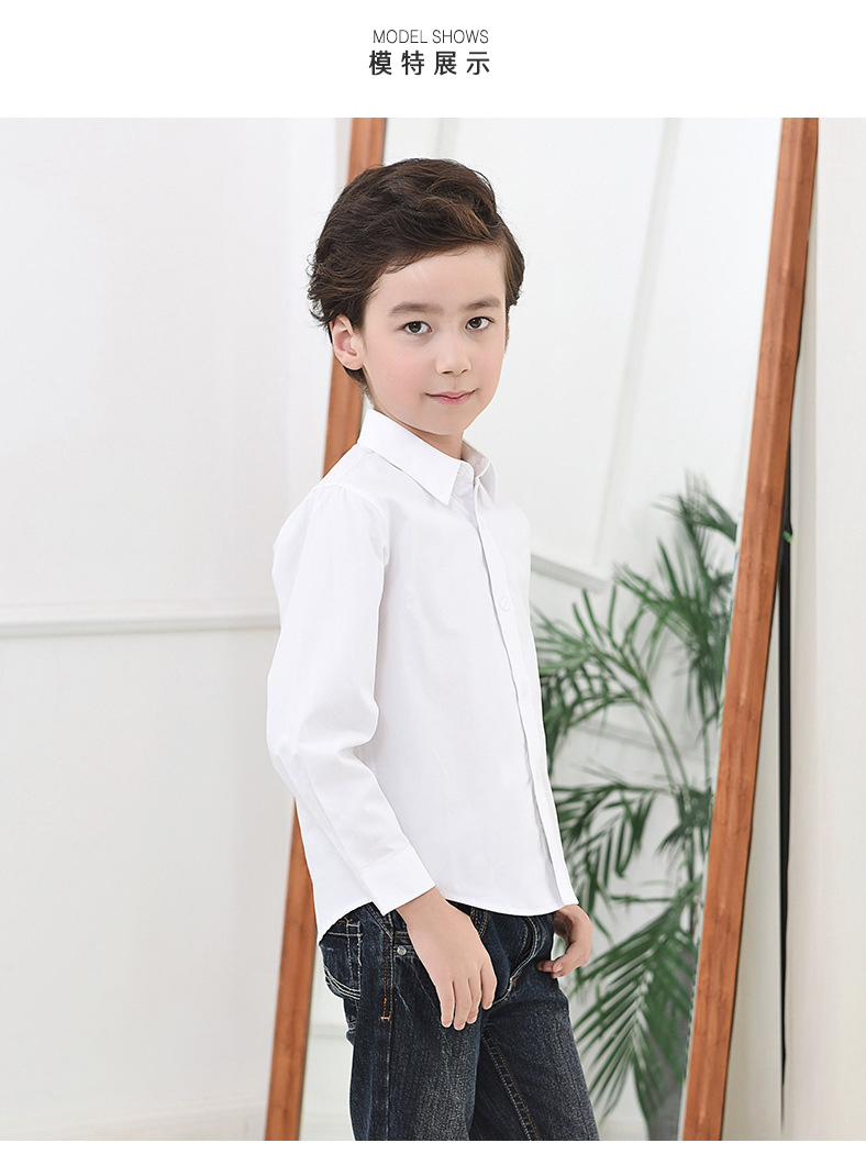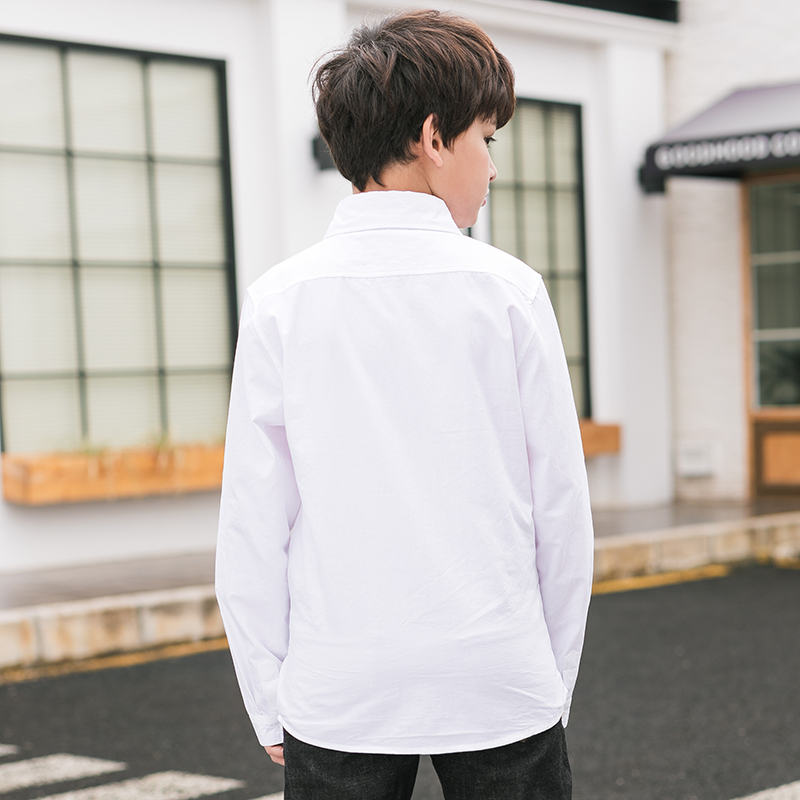 Jiuyu's children's white shirt, boys' spring and autumn pure cotton long-sleeved shirt, middle-aged and older children's performance solid color performance clothes, primary school uniforms, white 170 (suitable for height 161-170cm)