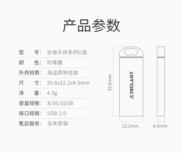 Taipower (TECLAST) 32GB USB2.0 U disk Lecun series champagne gold waterproof, anti-fall, portable and lightweight mini car metal USB flash drive