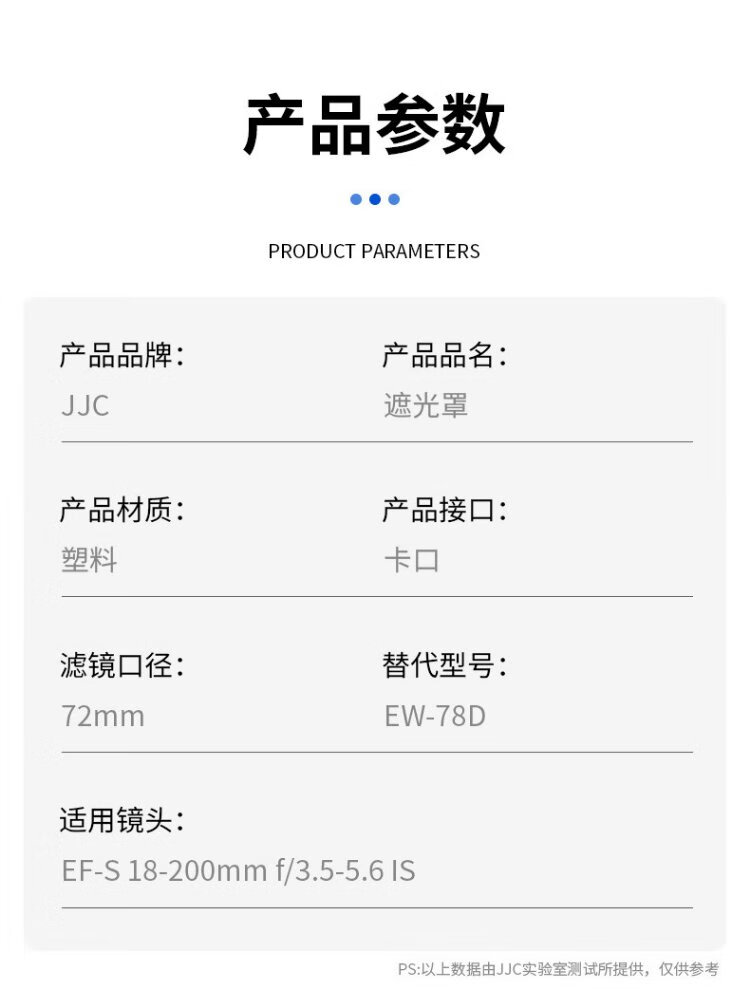 JJC подходит для объектива Canon EF-S 18-200 IS с блендой 72 мм EW-78D