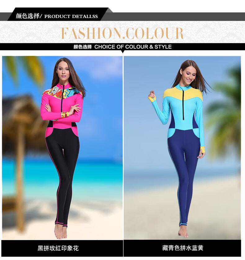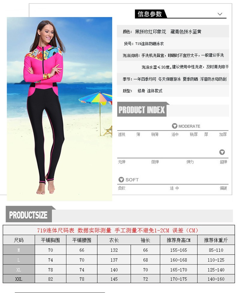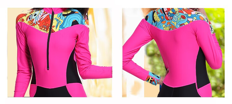 Yobel wetsuit couple women's summer sun protection long-sleeved large size one-piece swimsuit slimming quick-drying jellyfish suit men's snorkeling suit Y704 side strips pink with chest pad L