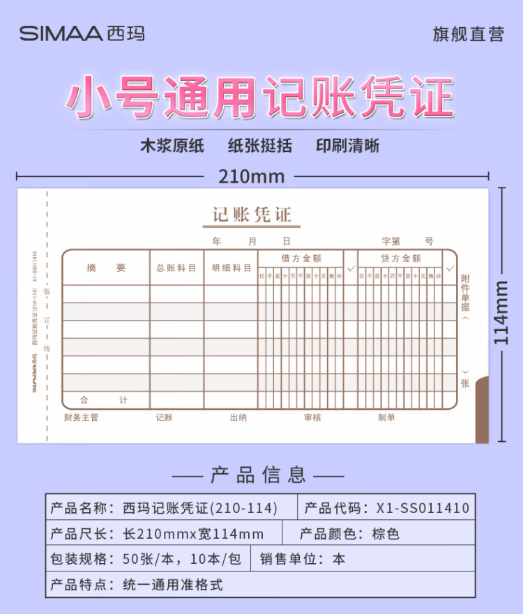 SIMAA general accounting voucher 210*114mm 50 pages/book 10 books/package SS011410