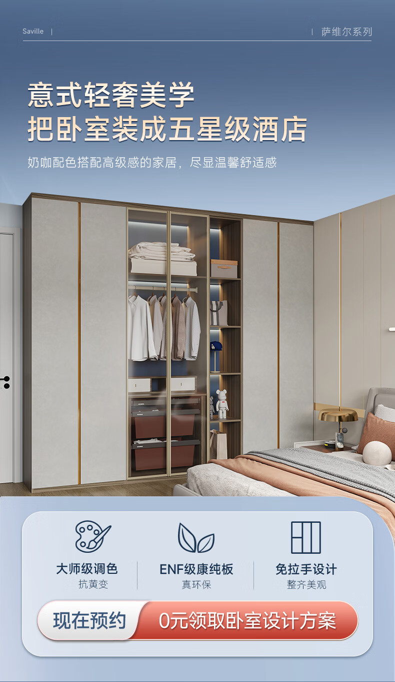 Sophia Wardrobe Modern Simple Whole House Customized Master Bedroom Overall Wardrobe Cloakroom Storage Cabinet Storage Cabinet Furniture RMB/square meter