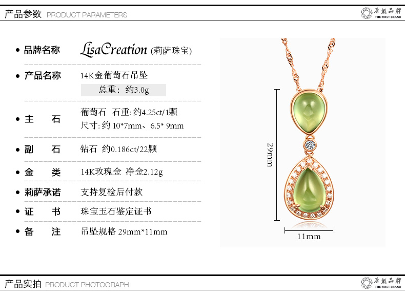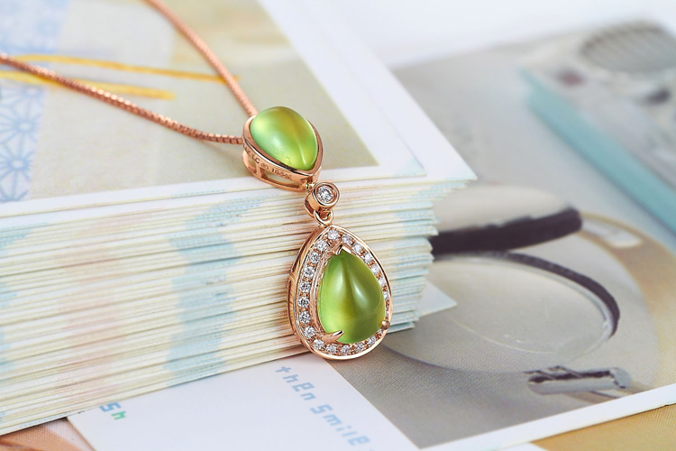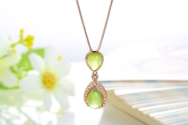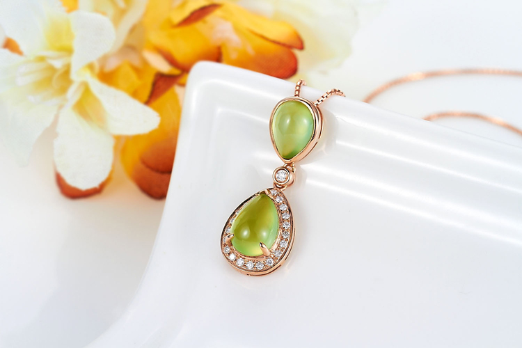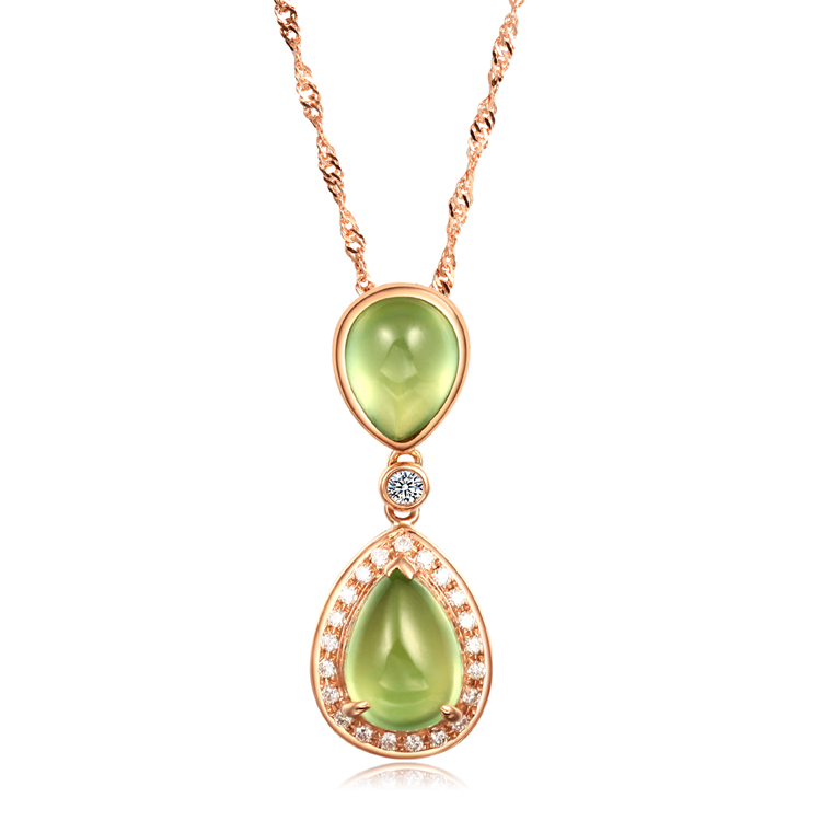 Lescreation Lisa Jewelry 4.25 carat prehnite diamond pendant for women K rose gold colored treasure necklace 18K gold natural prehnite diamond pendant