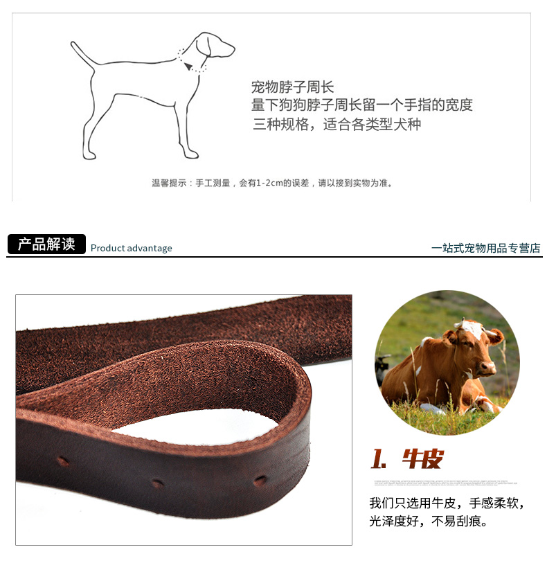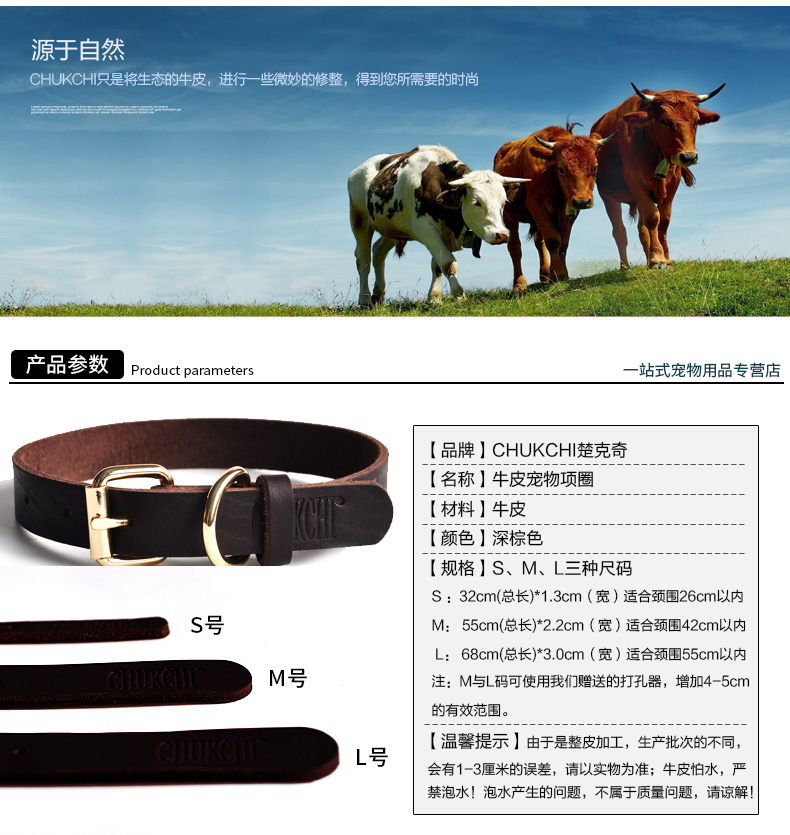 Chukchi (CHUKCHI) DIY cowhide pet collar for large dogs, pet supplies, leather collars for small and medium-sized dogs, calfskin M-medium dogs recommended 25-42CM