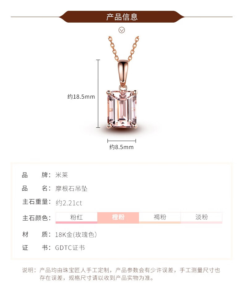 Millais Jewelry 2.21 carat orange pink morganite pendant 18K gold inlaid with diamond natural gemstone women's fashion jewelry necklace without chain. The chain can be customized additionally.
