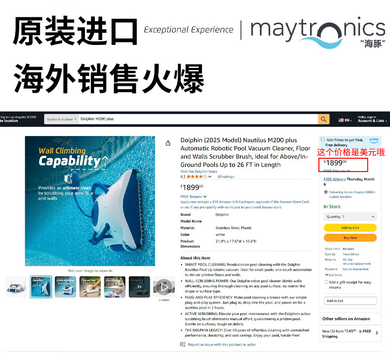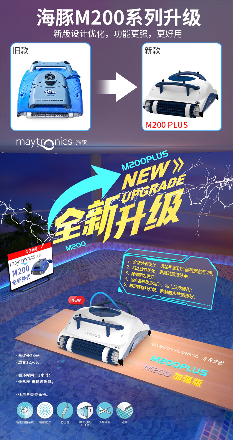 Maytronics American dolphin sewage suction machine underwater vacuum cleaner turtle robot fully automatic cleaning sewage suction machine M200 puls upgraded M200puls fully automatic sewage suction machine