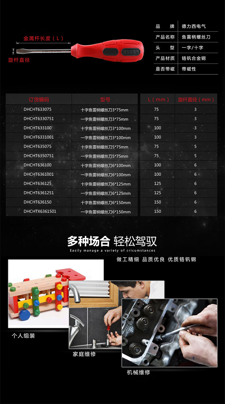 Delixi Electric Cross Slotted Screwdriver Household Chrome Vanadium Steel Screwdriver Plum Blossom Flat Mouth Screwdriver Cross Screwdriver 3*75mm