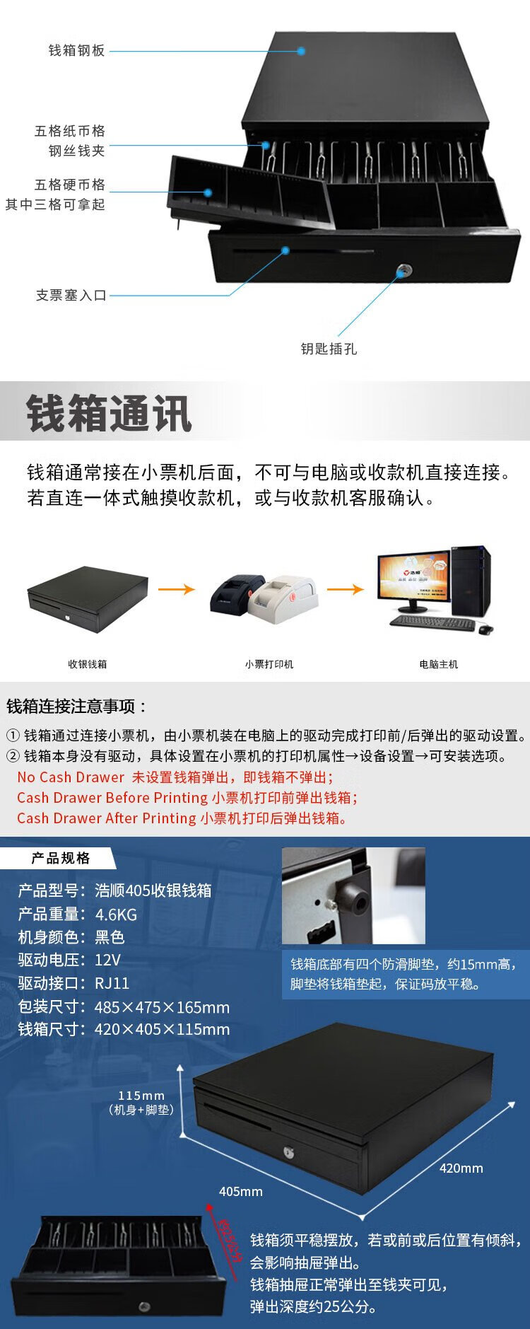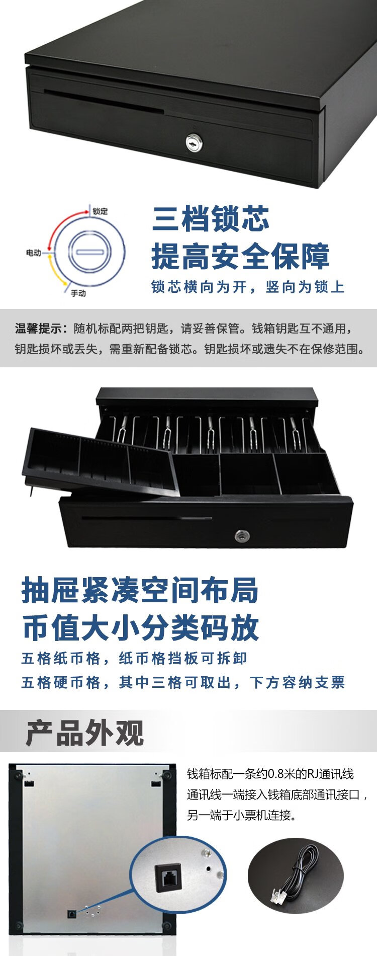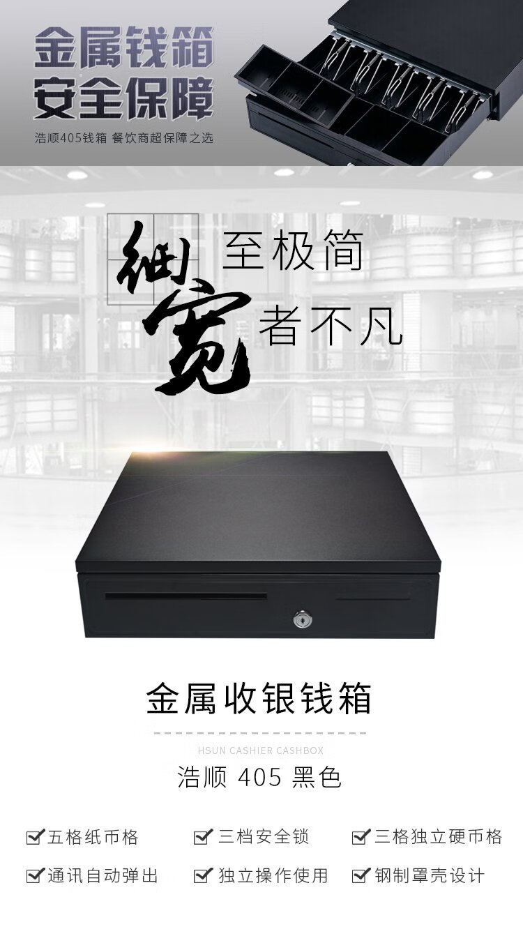 Hysoon HS-405 cash register cash box five compartments and three gears can be unlocked independently with keys Cash register cash box RJ11 crystal connector (12V black)