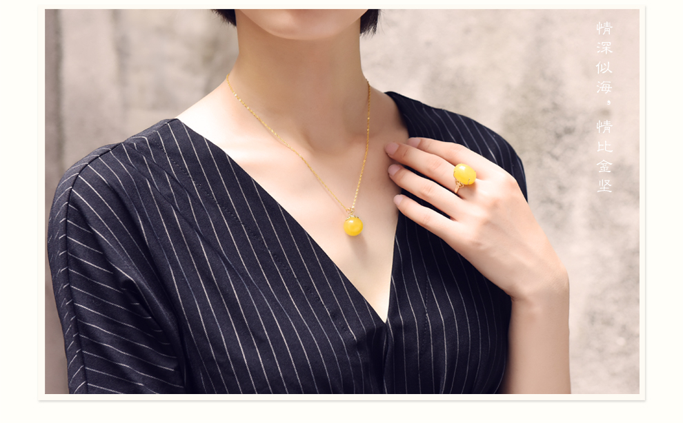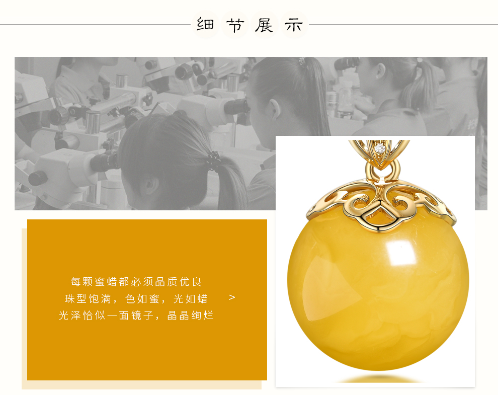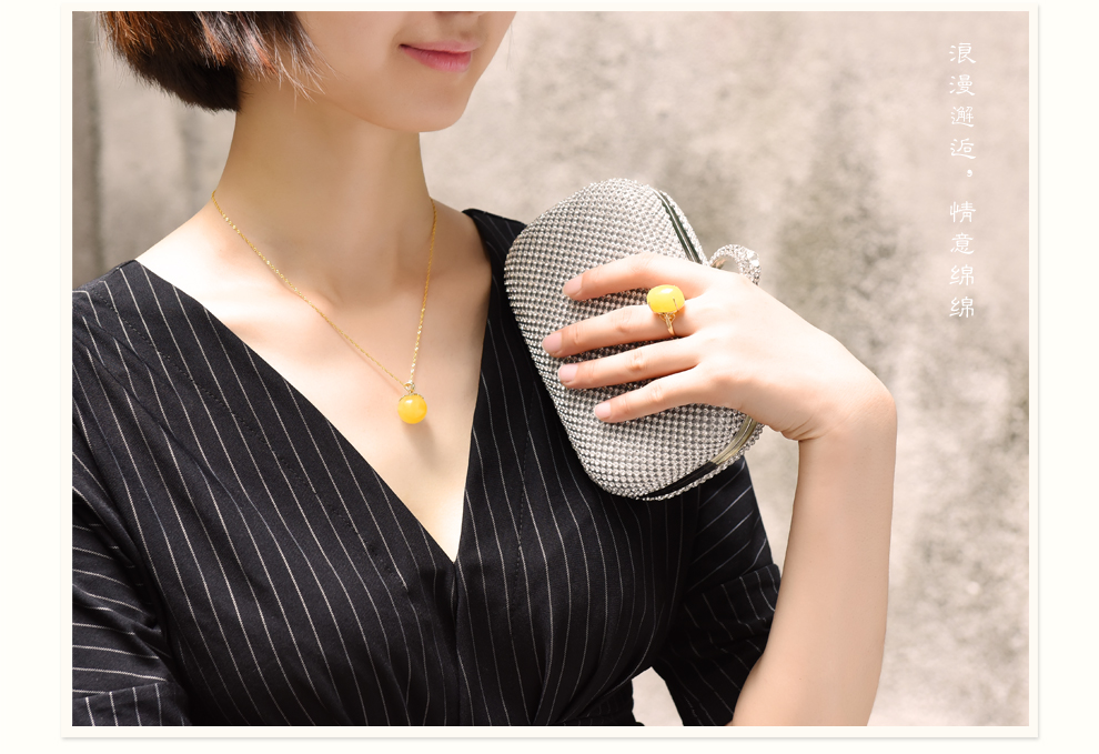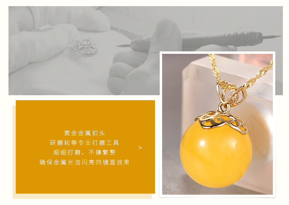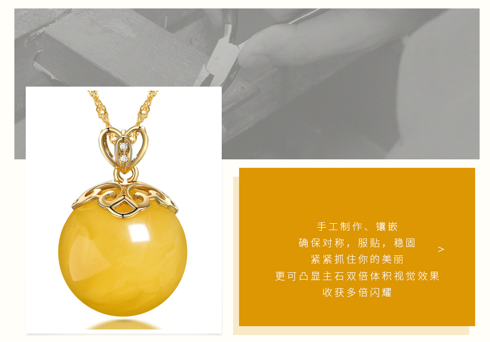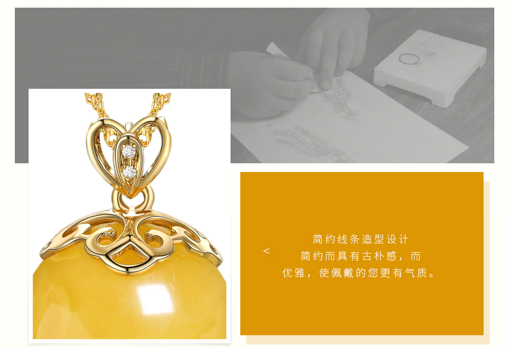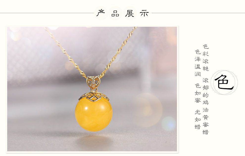Ouchini beeswax pendant natural round beads amber 18K gold with diamond inlaid women's pendant (customized 7-10 working days)
