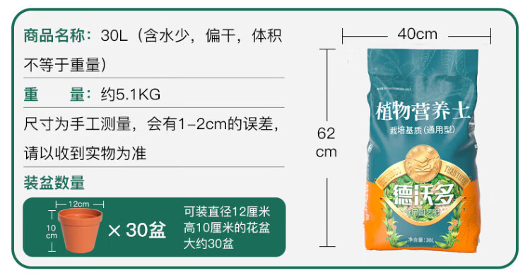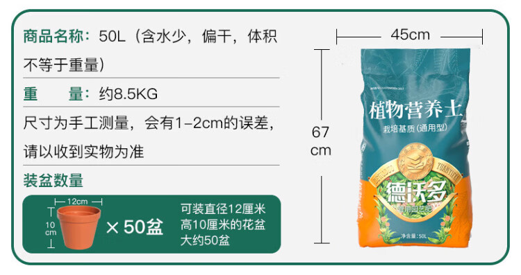 Dewoduo imported general nutritional soil for flower cultivation soil orchid soil succulent soil vegetable flower plant money tree green radish strawberry soil imported nutritional soil 15L