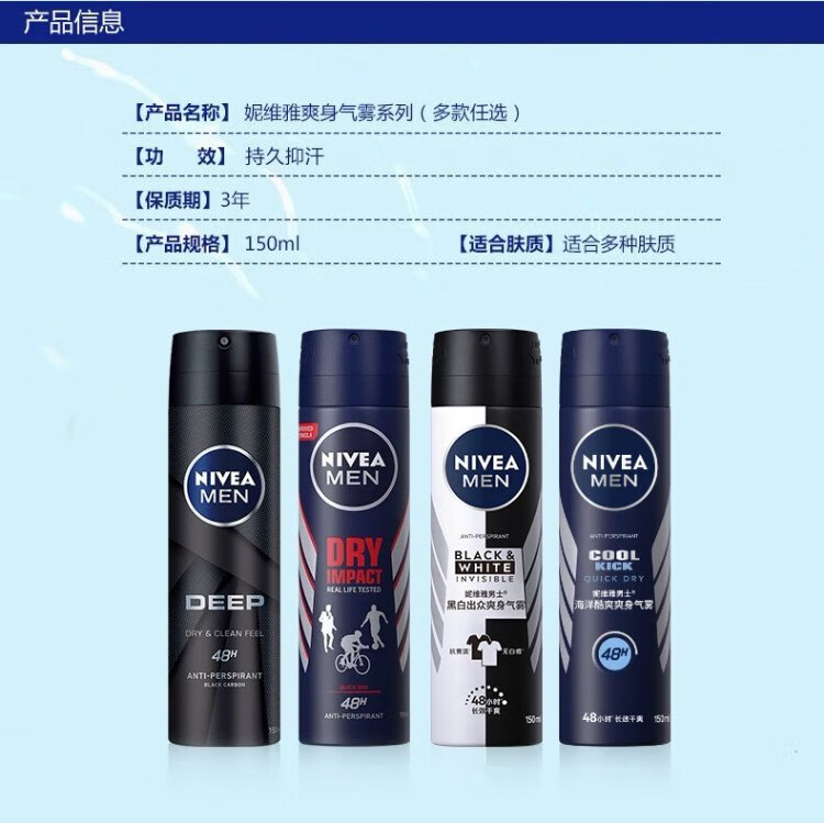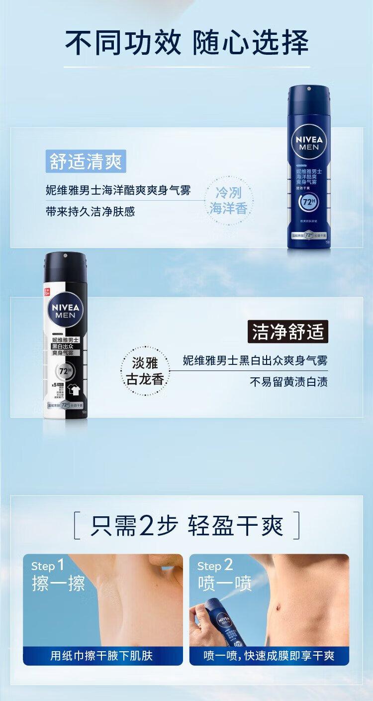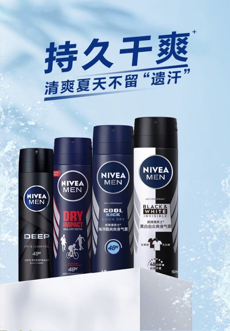 NIVEA Men's Black and White Extraordinary Soothing Mist 150ml (Summer, anti-perspirant and dry underarms)