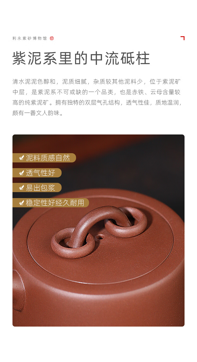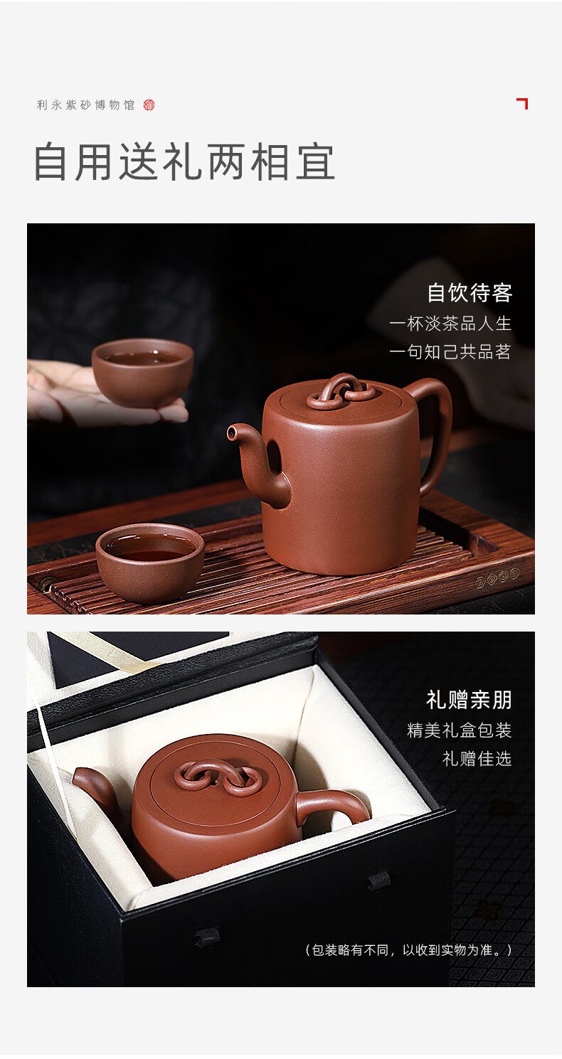 Centennial Liyong Yixing famous purple sand pot pure handmade raw mineral clear cement double circle pot Kung Fu tea set teapot 450cc clear cement 450ml