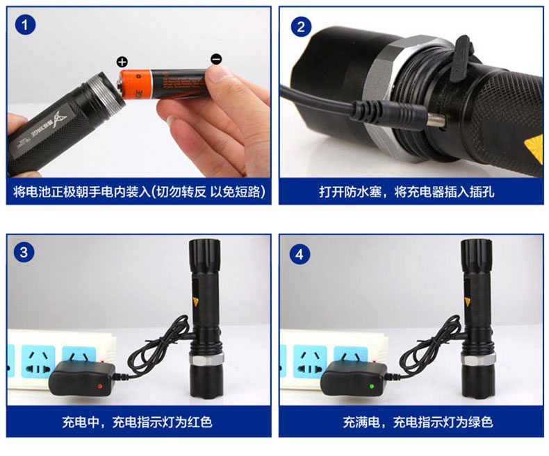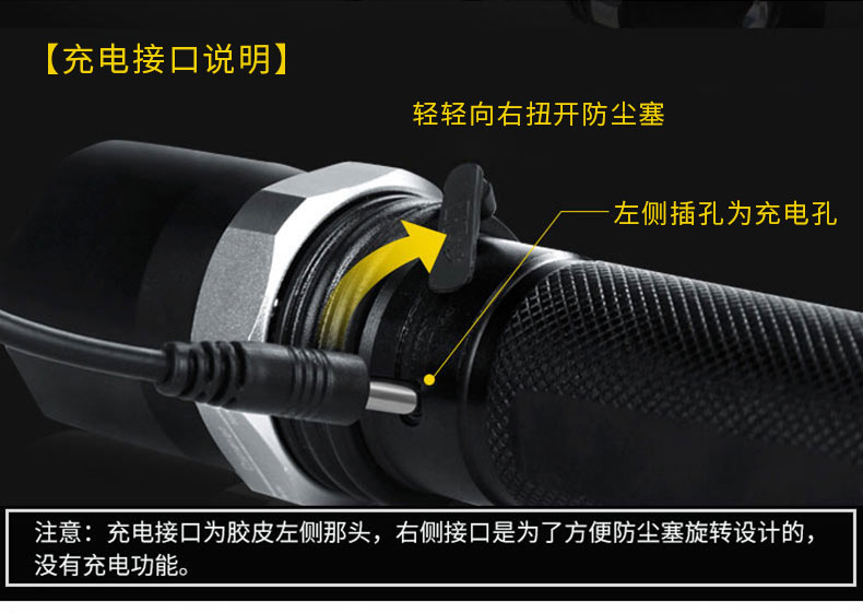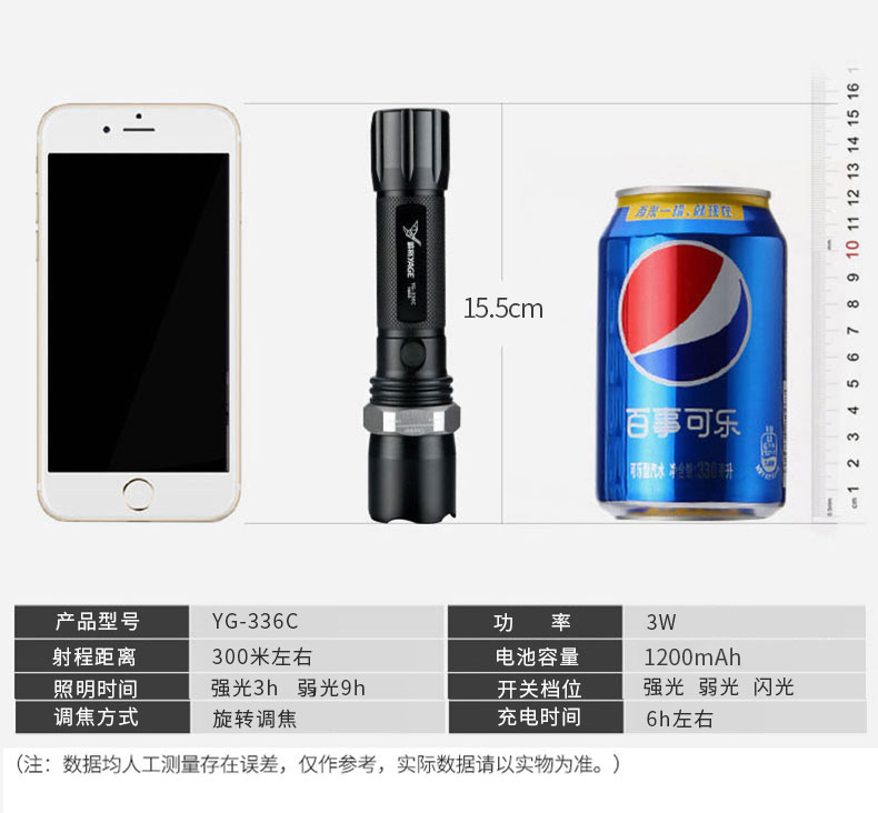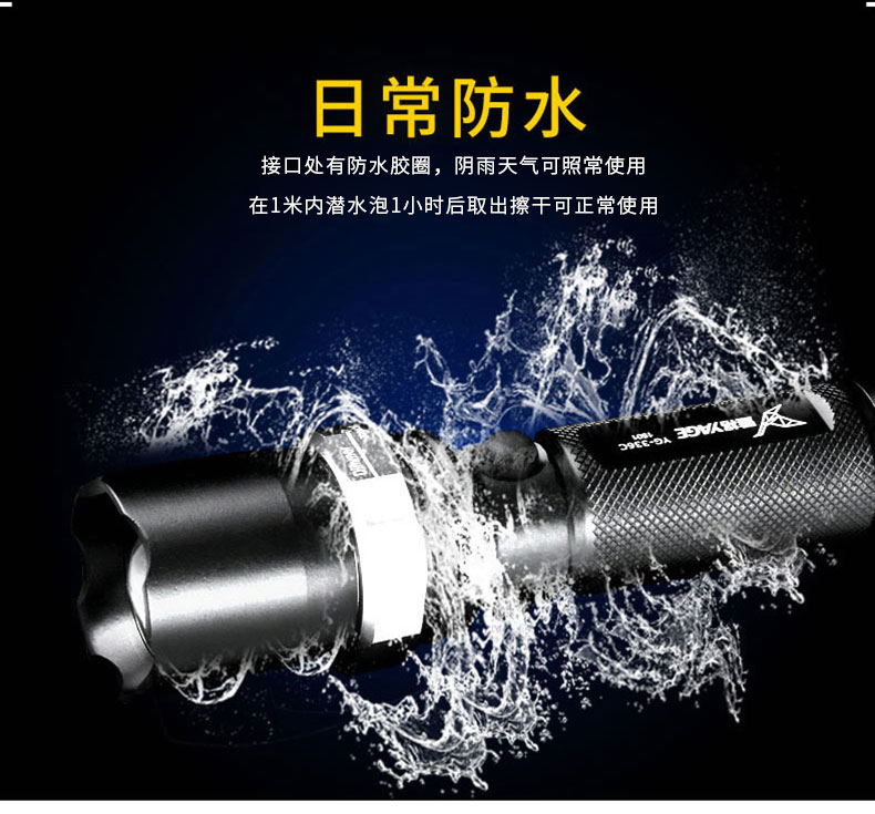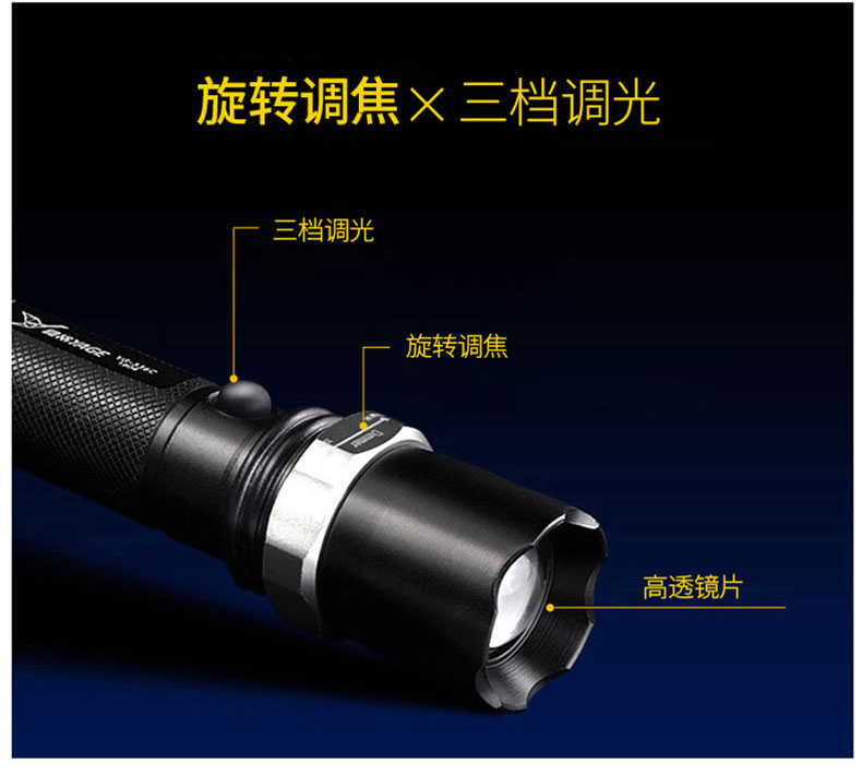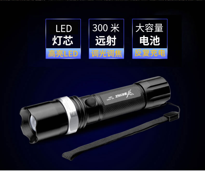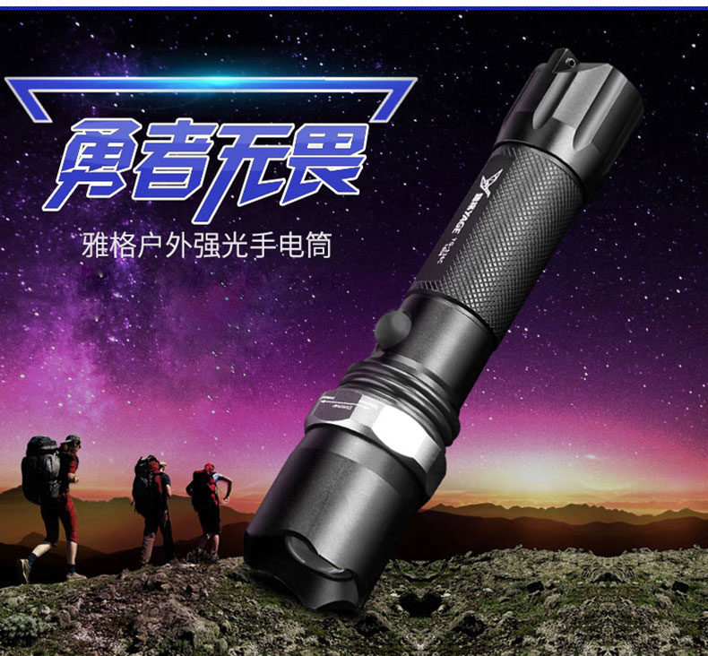 Yage flashlight, strong light, long-range charging, dimmable, adjustable focus, three-speed dimming, zoom, outdoor riding, household waterproof LED long-range, with battery charger 336C+ bracket