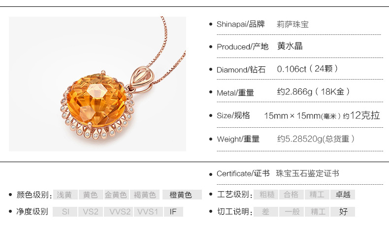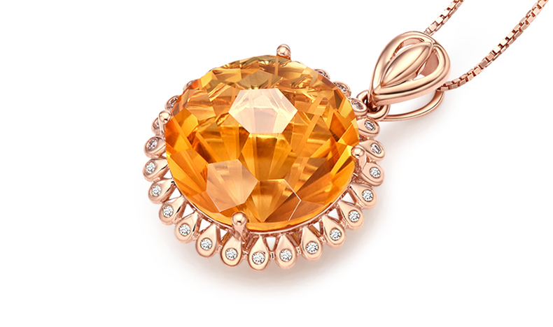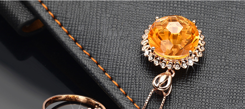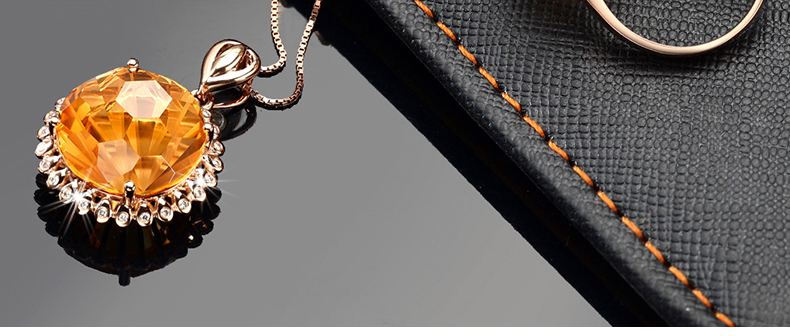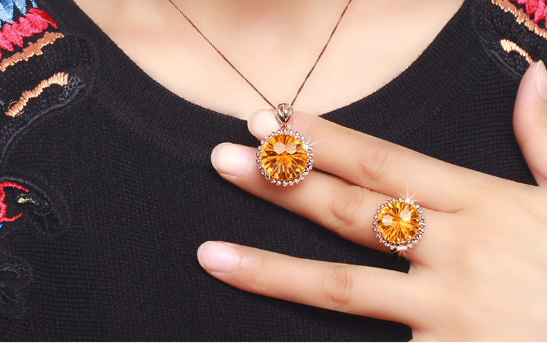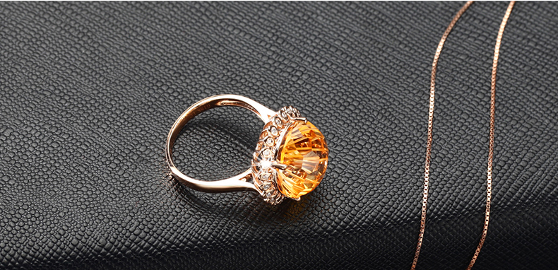 Lescreation Lisa Jewelry Natural Citrine Diamond Ring Pendant Set 18K Rose Gold Citrine Gemstone South African Diamond Necklace for Women 9.46 Carats 18K Gold Citrine Diamond Ring (Remark Hand Size)