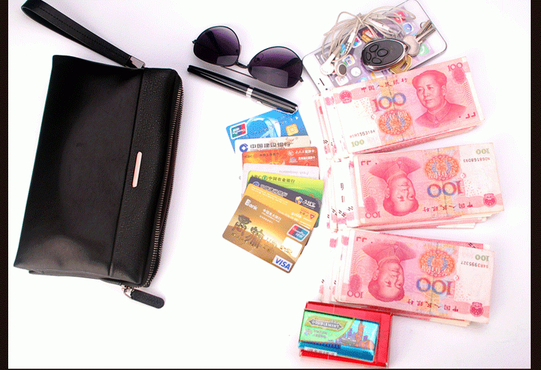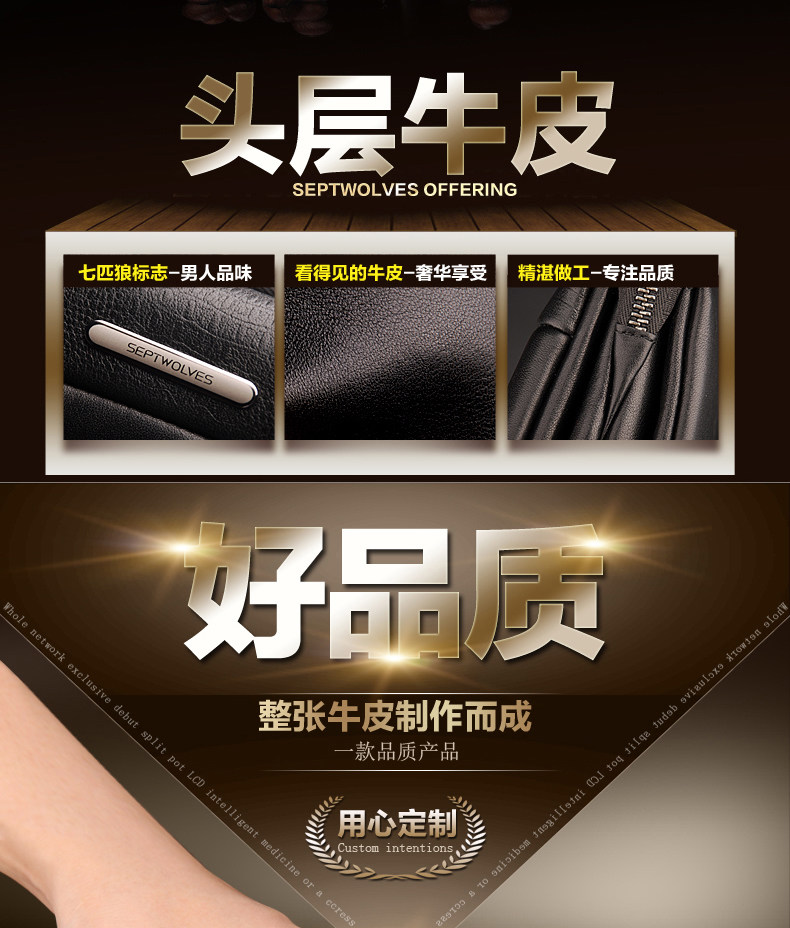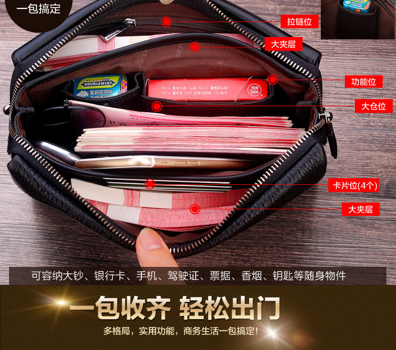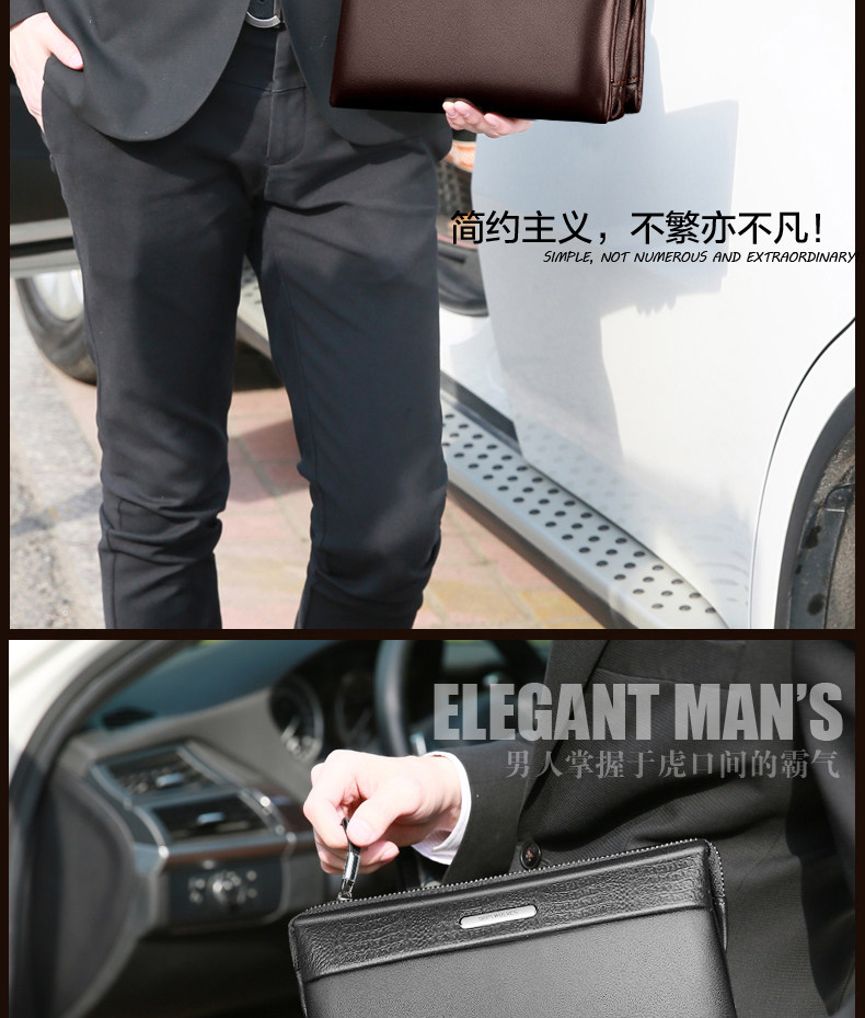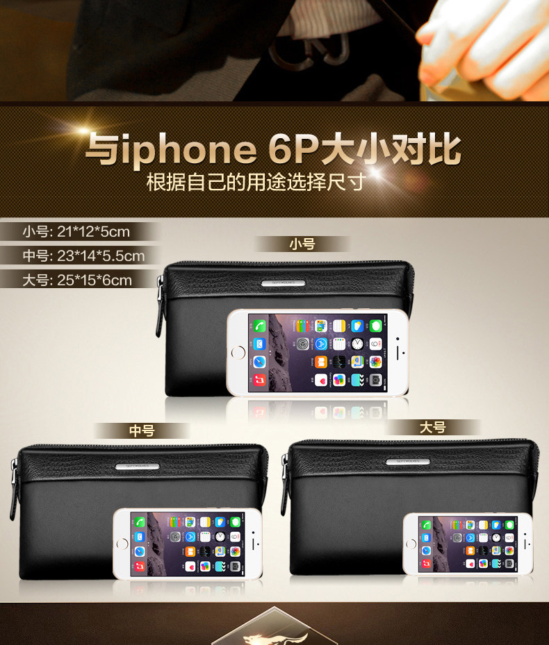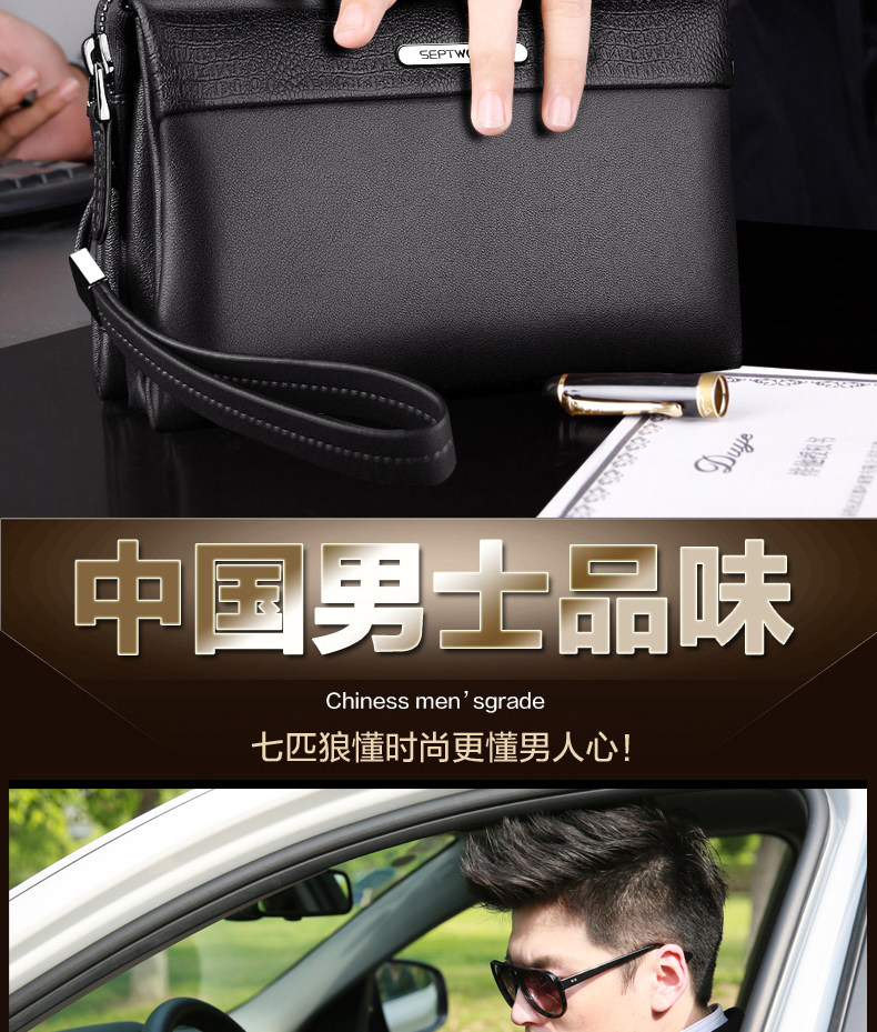 Septwolves men's handbag genuine leather large capacity first layer cowhide multifunctional clutch bag business casual clutch bag black medium size 23*14*5.5