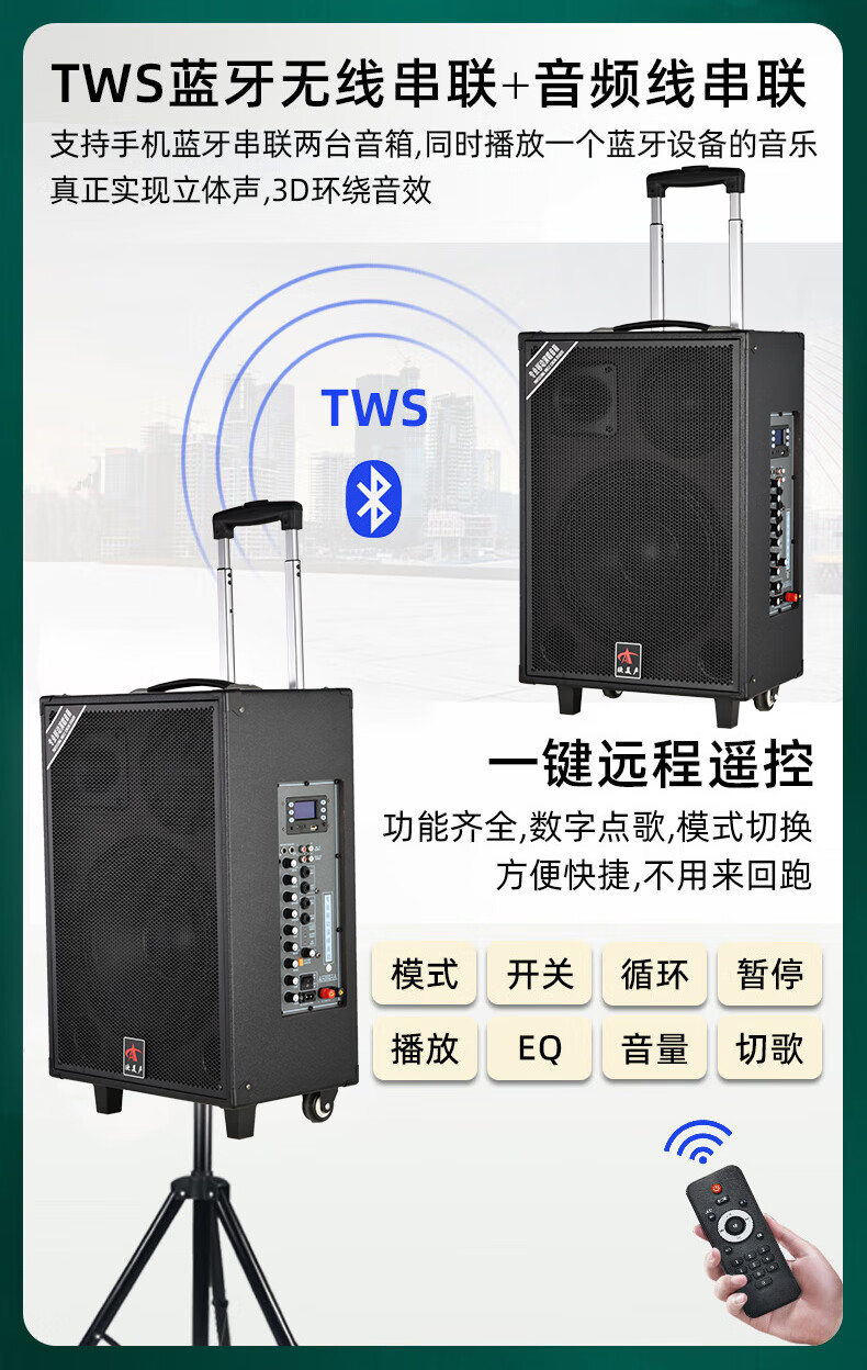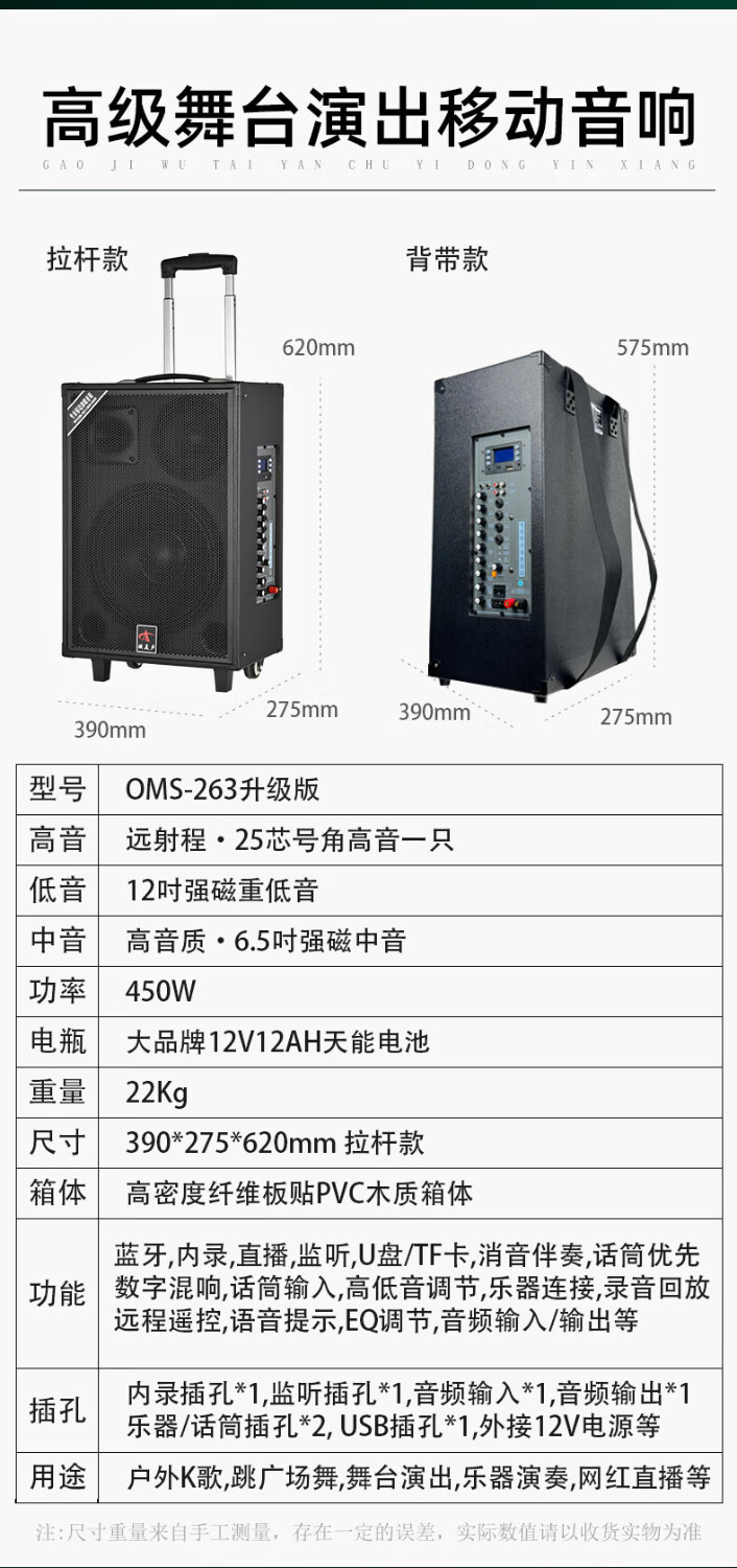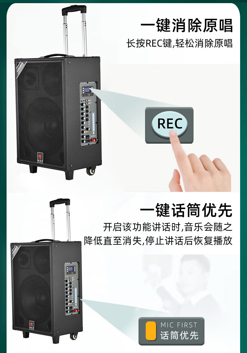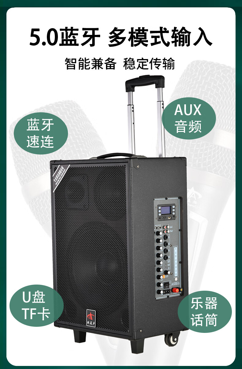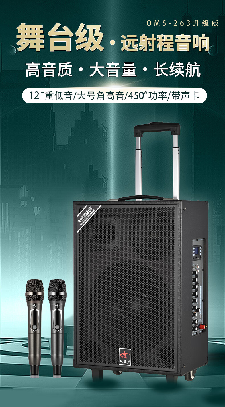 European and American sound 263 outdoor audio karaoke special all-in-one machine with sound card professional three-way singing high-power portable square dance Bluetooth trolley speaker with wireless microphone 12 inches 12 inches/263+2 microphones + spree