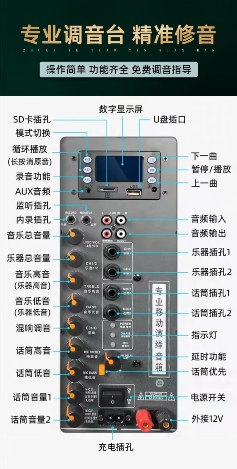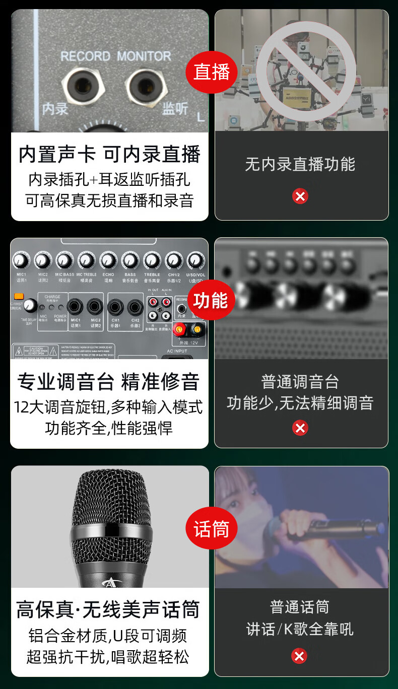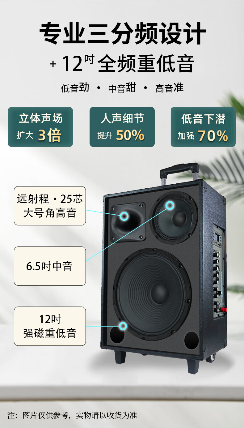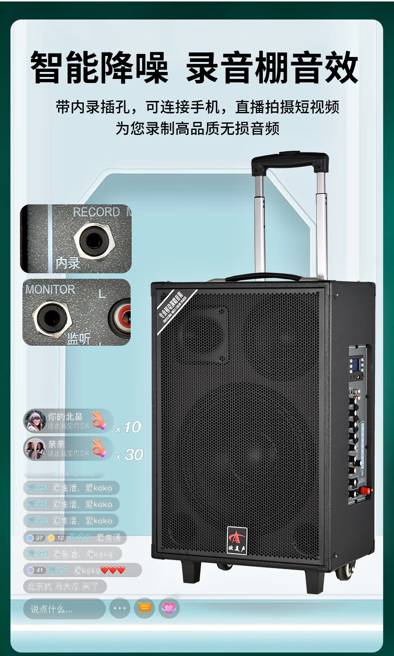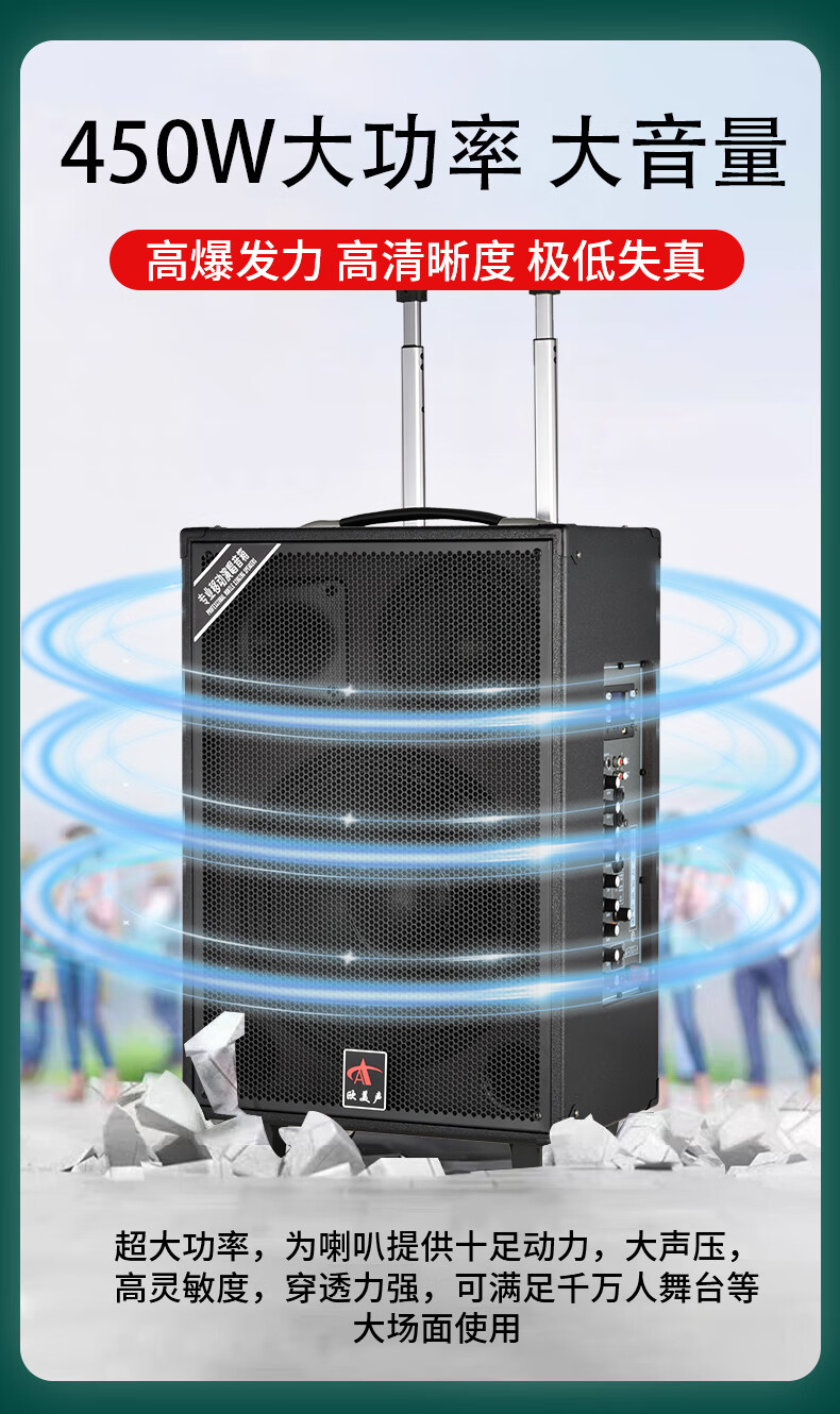 European and American sound 263 outdoor audio karaoke special all-in-one machine with sound card professional three-way singing high-power portable square dance Bluetooth trolley speaker with wireless microphone 12 inches 12 inches/263+2 microphones + spree