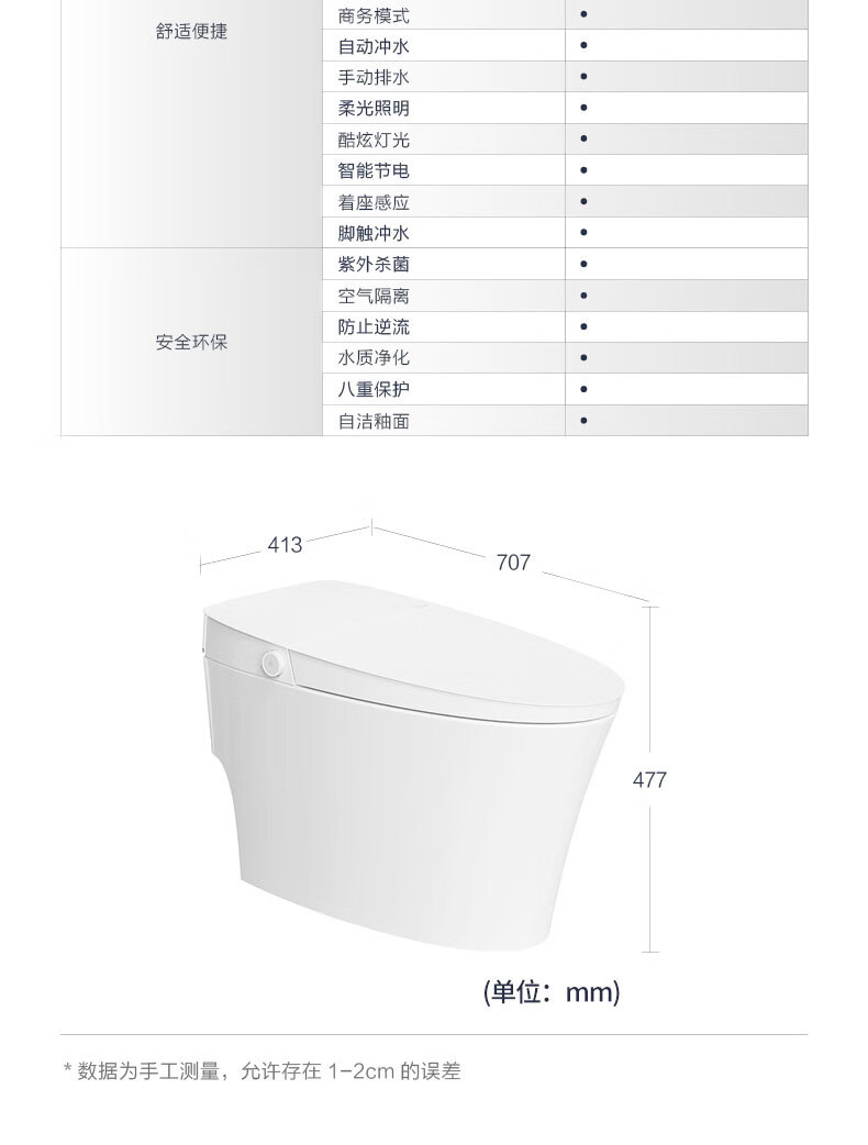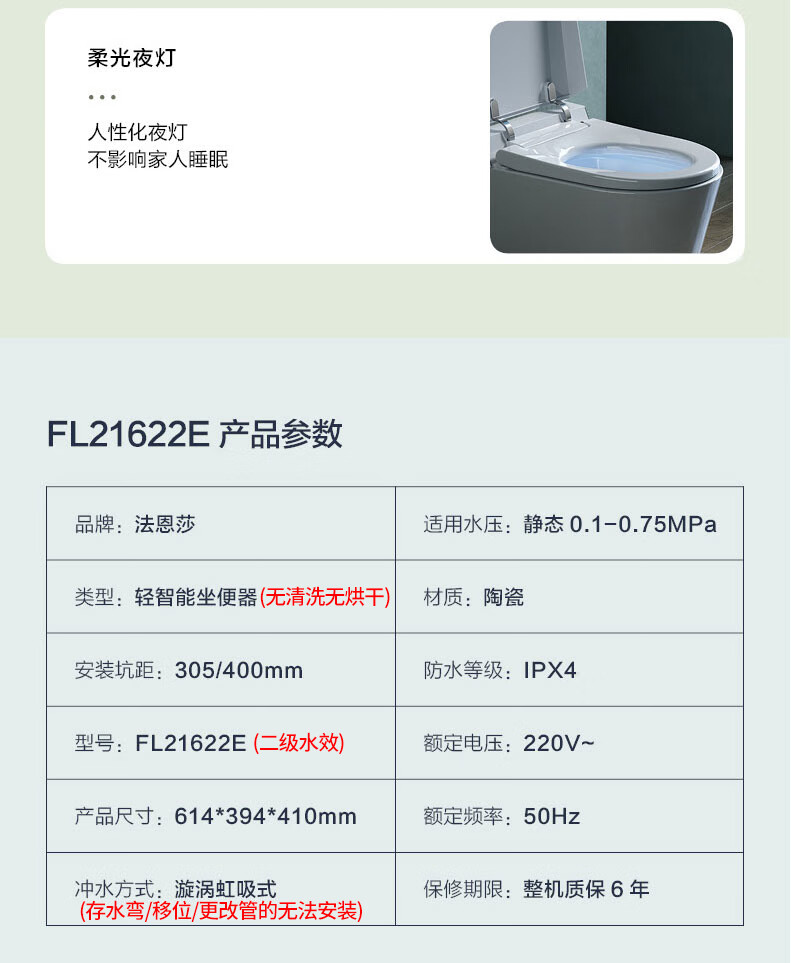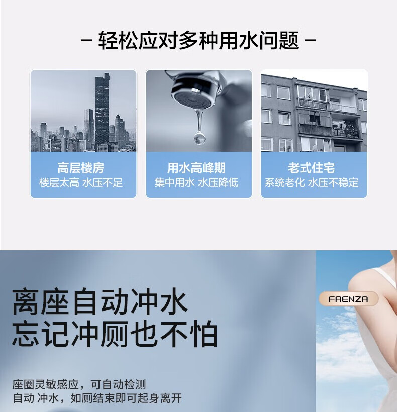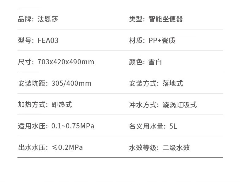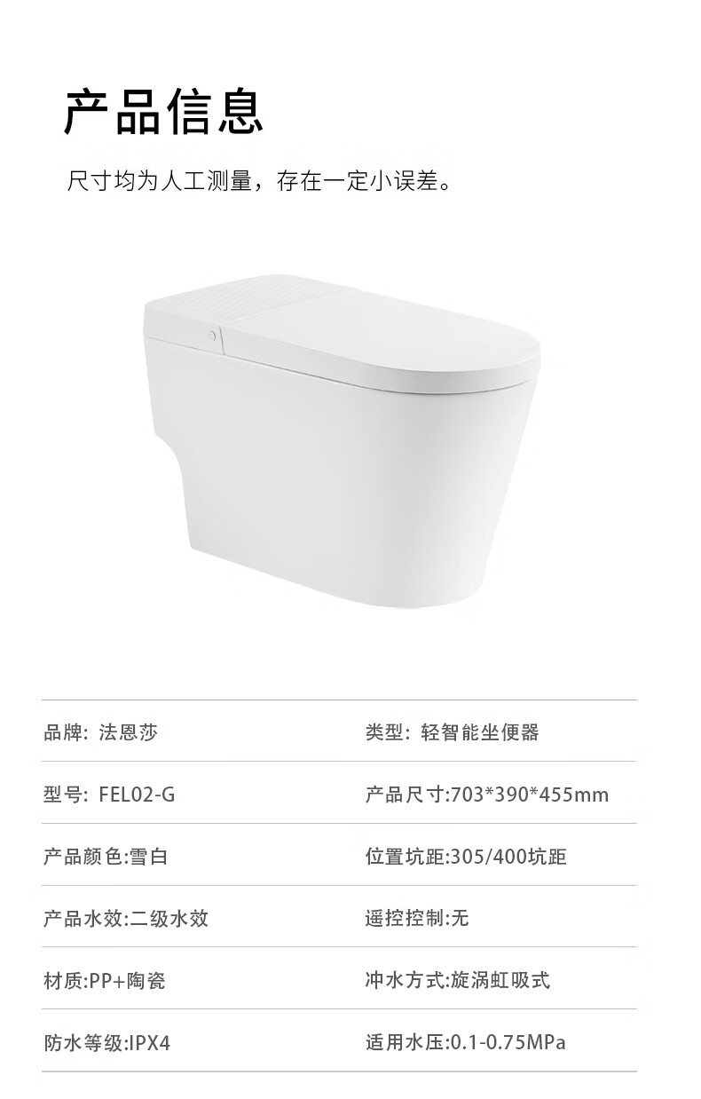 Faensa Light Smart Toilet All-in-one Waterless Toilet Off-Seat Automatic Flushing Seat Heated Small Household Toilet Spot 21040E Foot Feeling Flush Women's Wash 300 Pit Distance