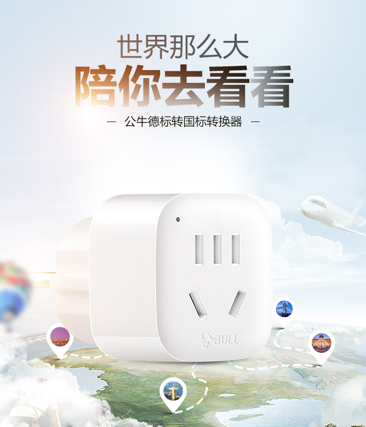 Bull (BULL) European standard German standard conversion plug converter socket European standard German to Chinese plug converter suitable for South Korea, Europe, Russia, the Netherlands, Vietnam, Thailand, Bali, etc.