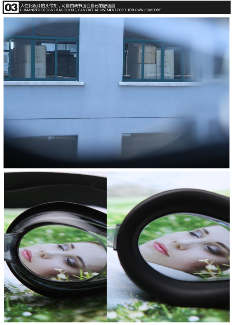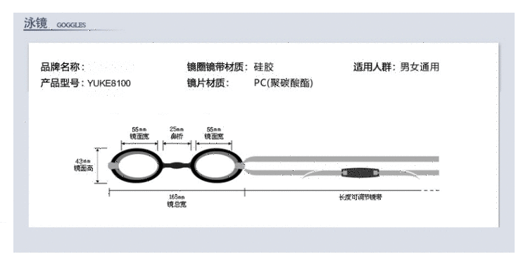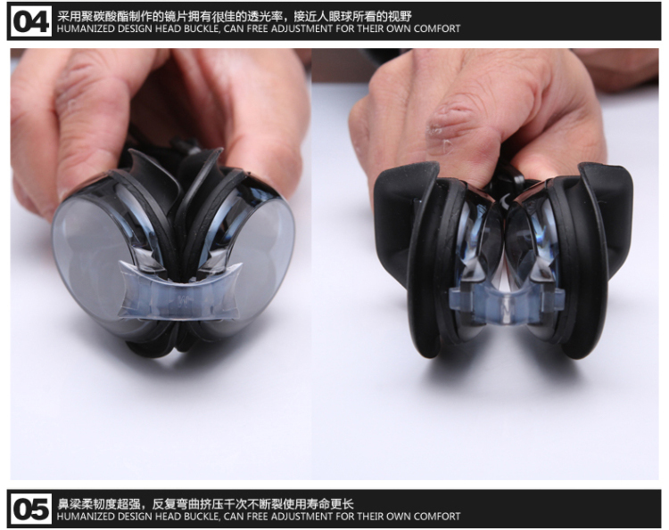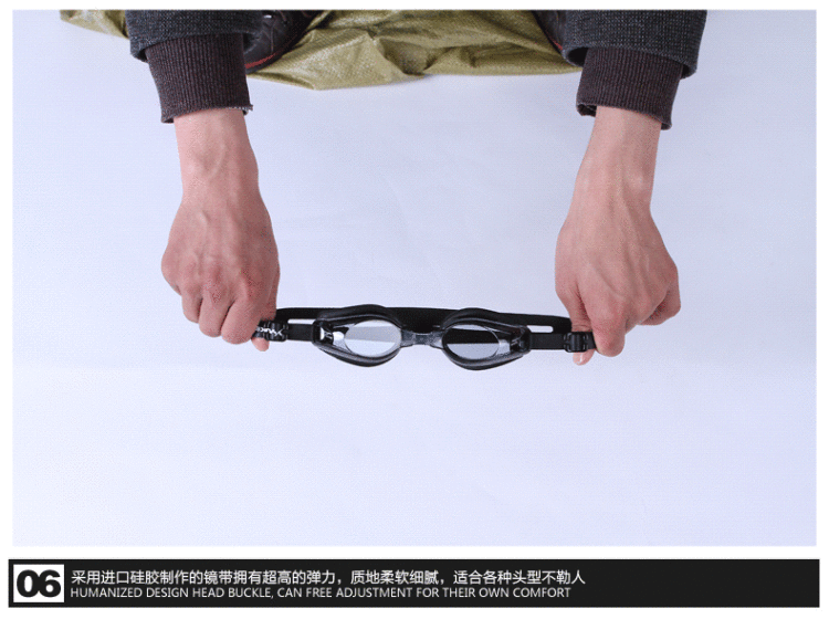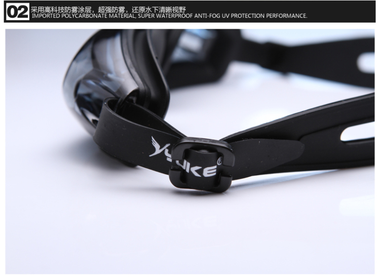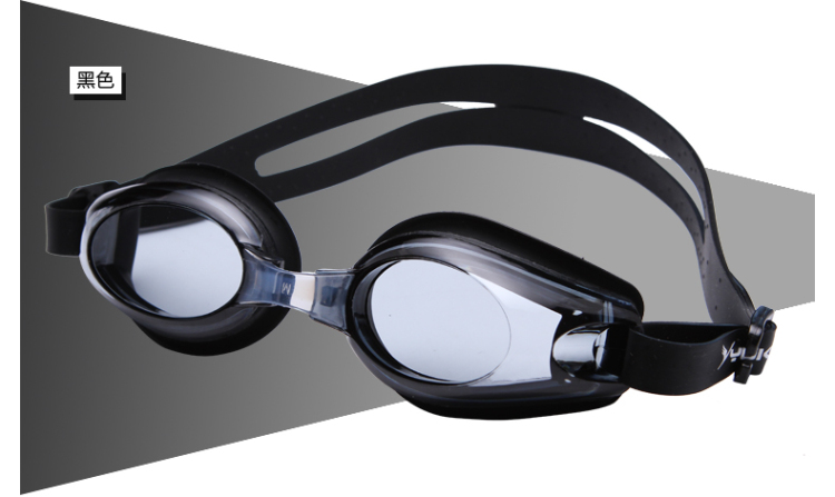 Yuke Waterproof Anti-fog Swimming Goggles + Ear Protection Swimming Cap for Men and Women with Long Hair, Pu Coating Does Not Strap the Head, Black Suit, Flat Light, No Myopia