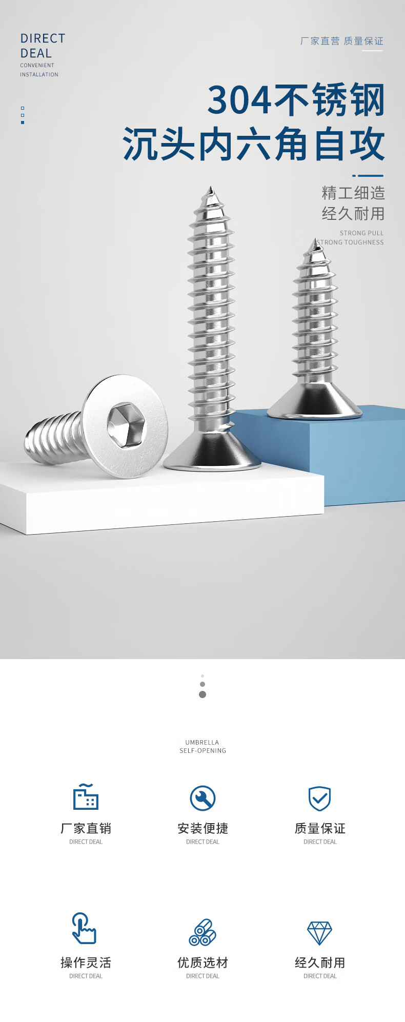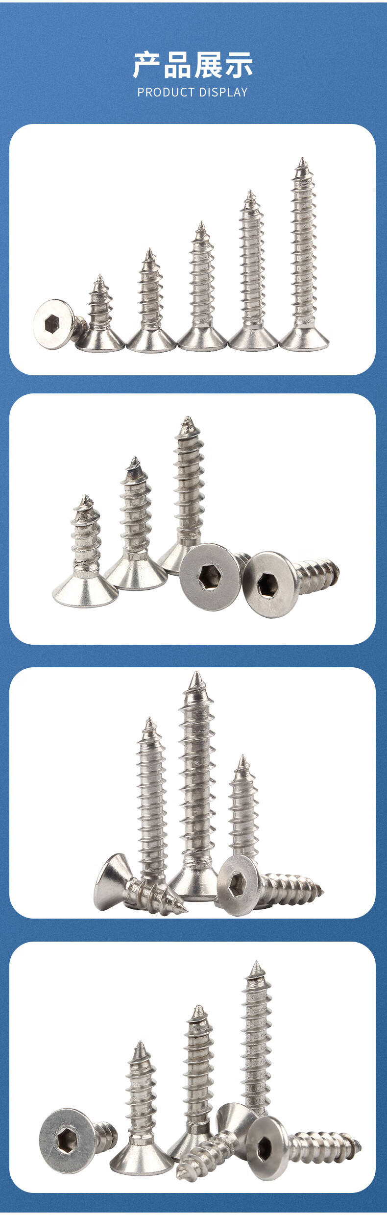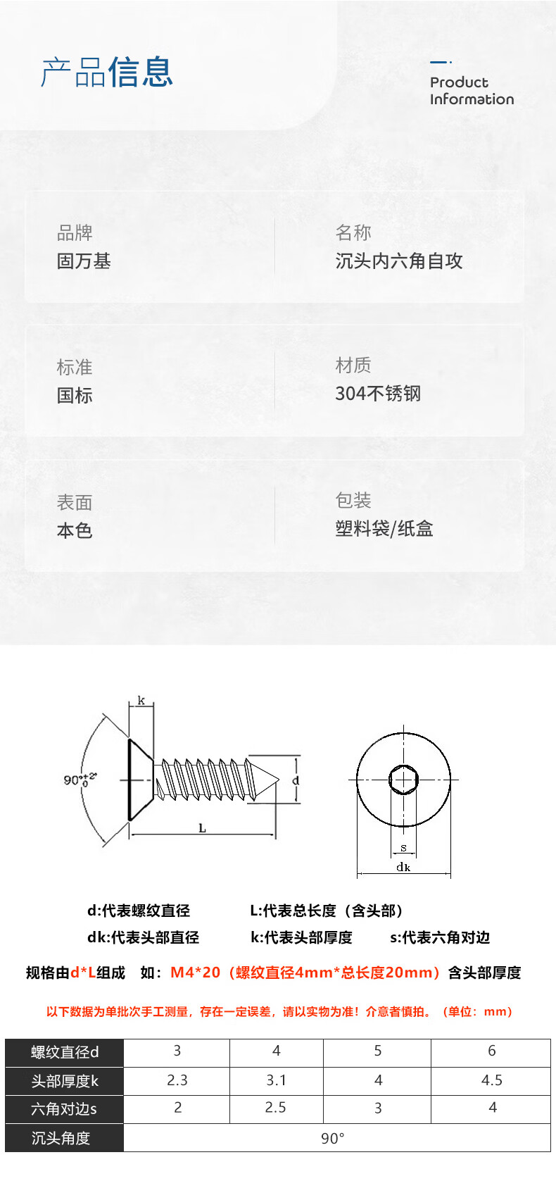 Guwanji 304 stainless steel flat head hexagonal self-tapping screws countersunk head hexagonal self-tapping machine screws M4*10 50 pieces