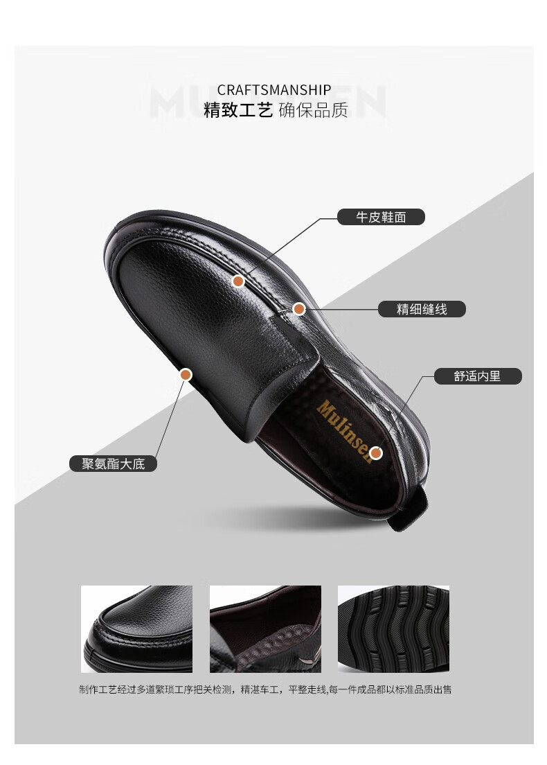 Mulinsen Men's Shoes Business Casual Shoes Men's Leather Shoes Spring and Summer Breathable First Layer Cowhide Formal Shoes Men's Dad Shoes Black (Leather Shoe Size) 42 Leather Shoe Size