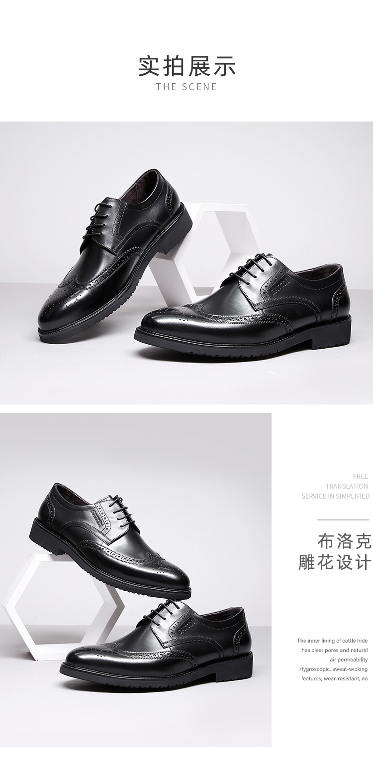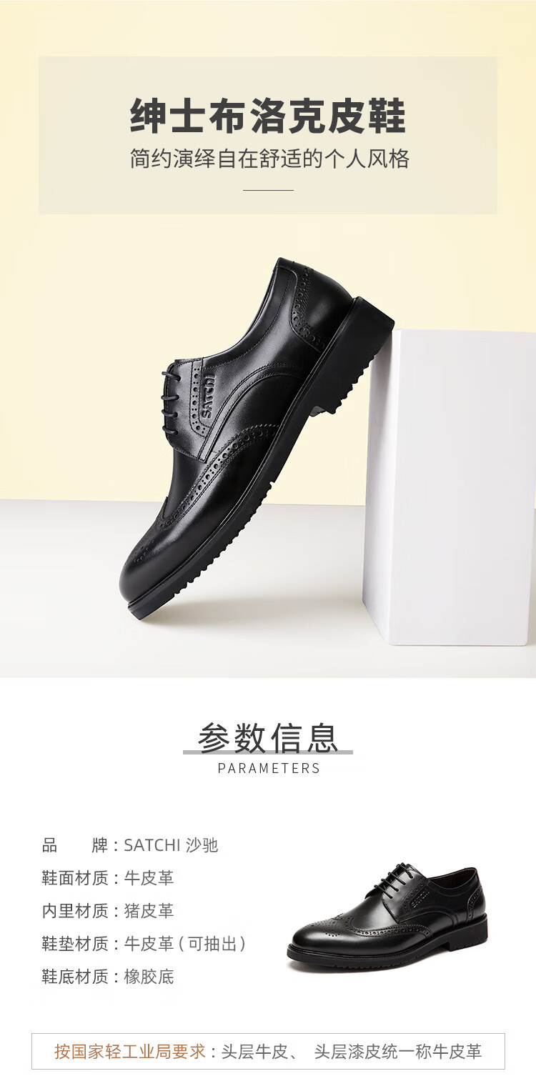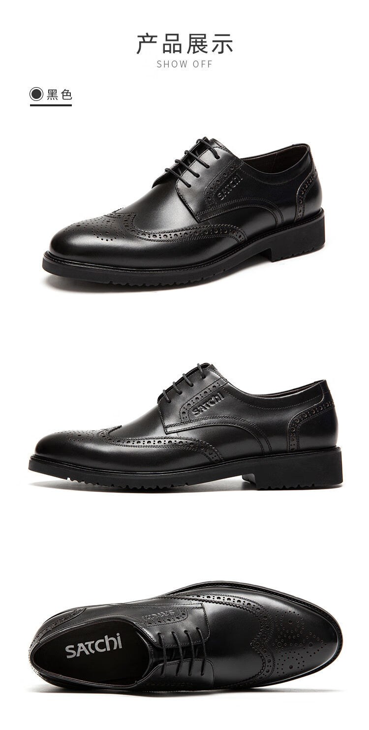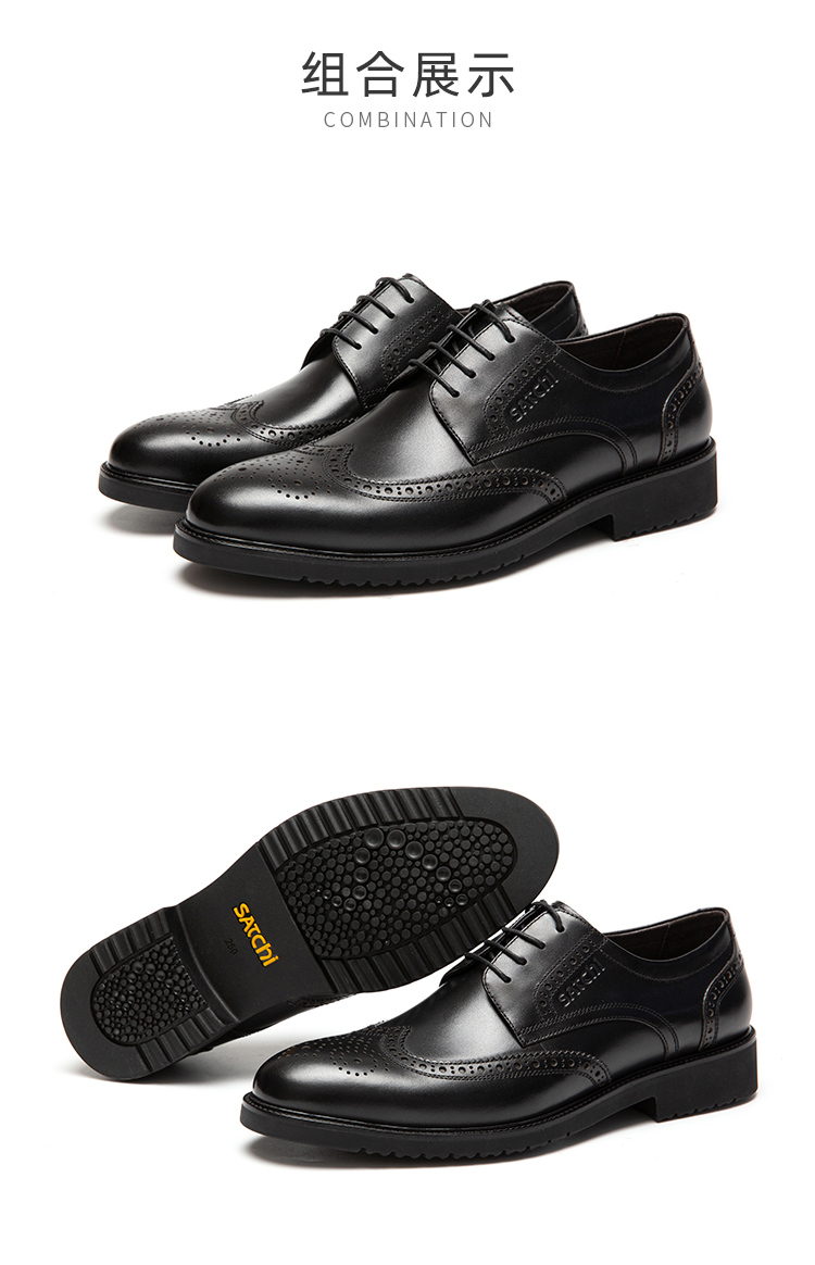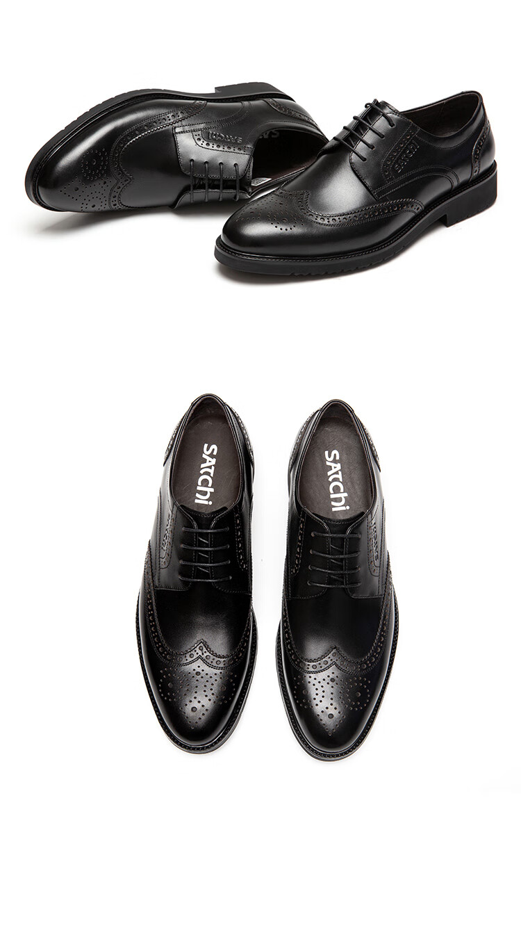 Sachi men's shoes, breathable business formal shoes, lace-up casual leather shoes, comfortable retro stitching carved brogue leather shoes, black (752082042Z) 40 European size (national code 41)