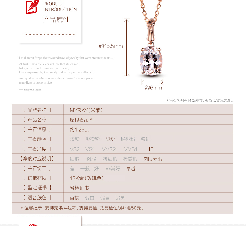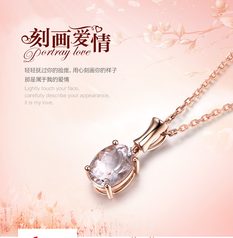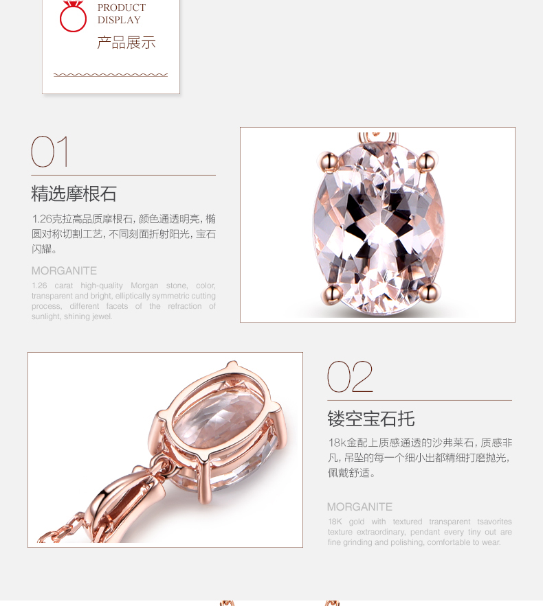 Millais Jewelry 1.26 carat natural morganite pendant 18K gold rose necklace colored gemstone birthday gift for women. Chain not included. The chain can be customized additionally.