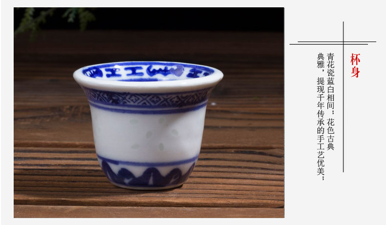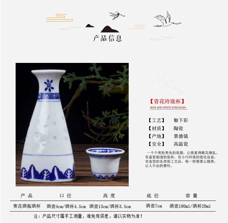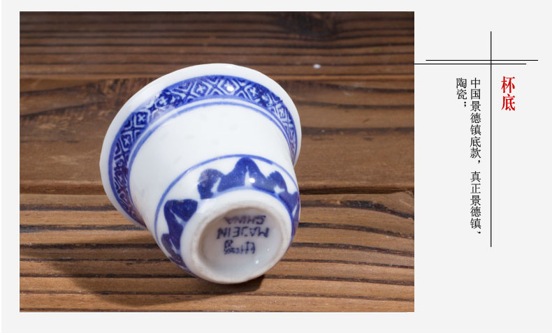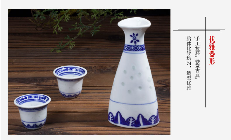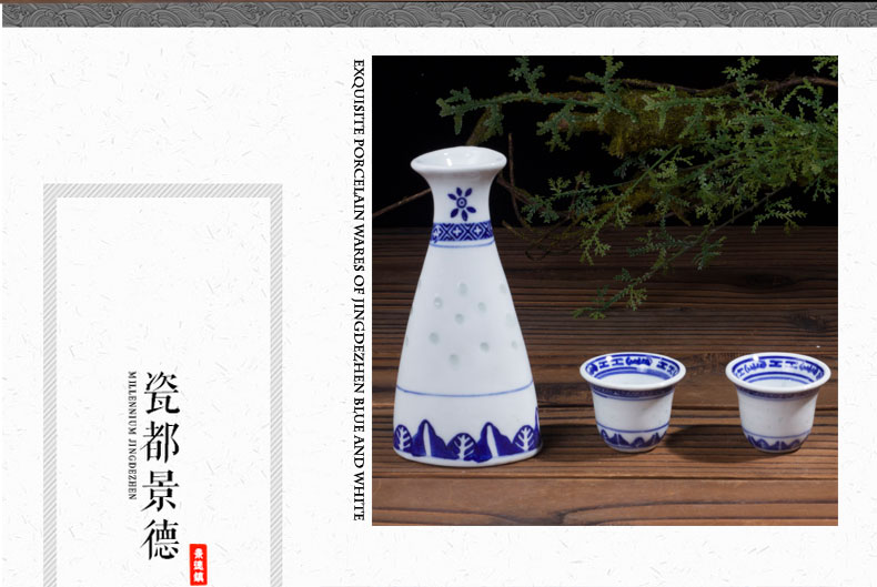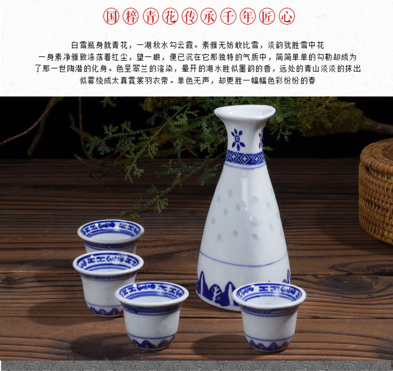 LICHEN blue and white porcelain jug and wine cup Jingdezhen exquisite old style porcelain underglaze colored wine set Old-fashioned blue and white exquisite one pot four cups one