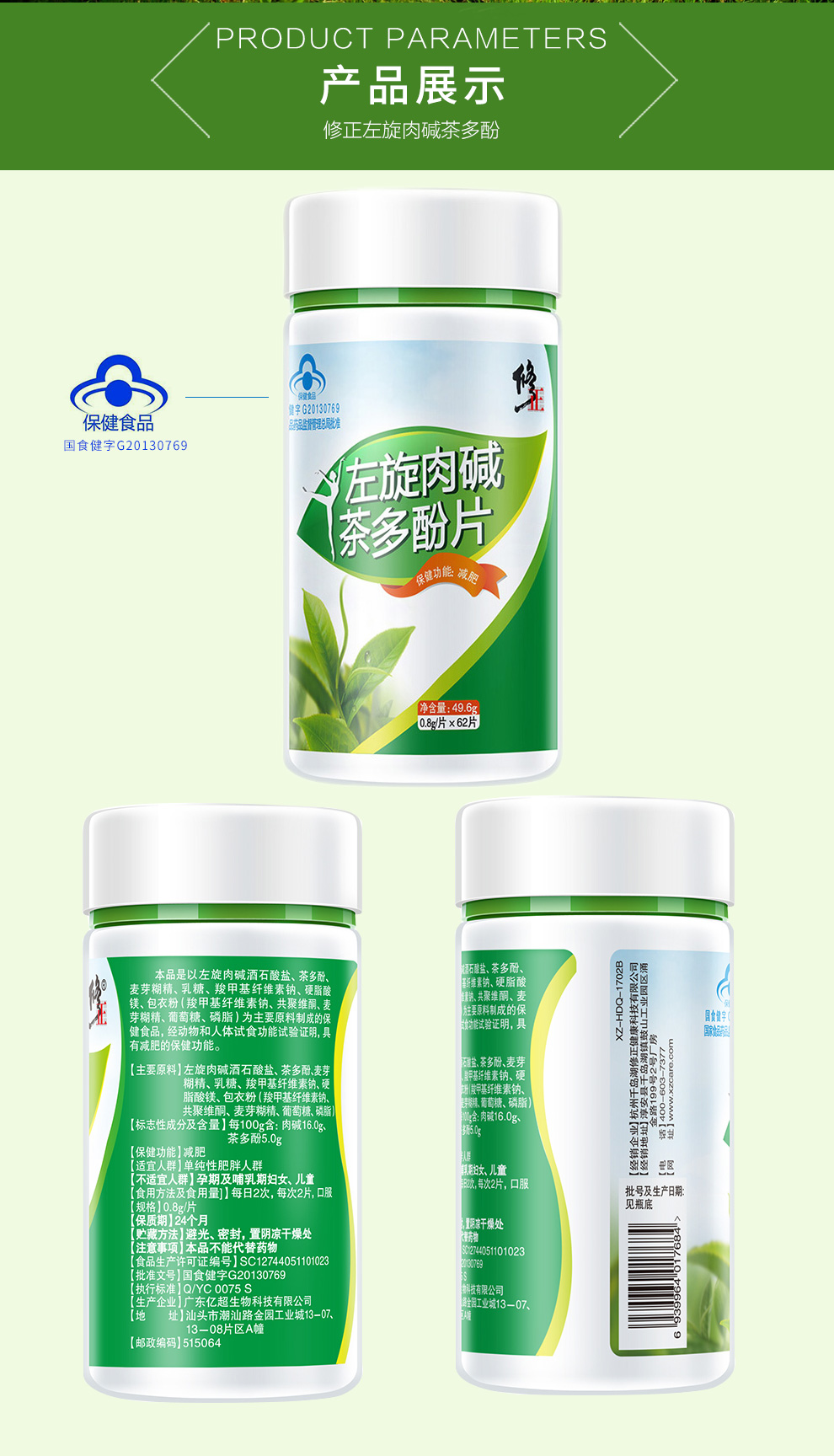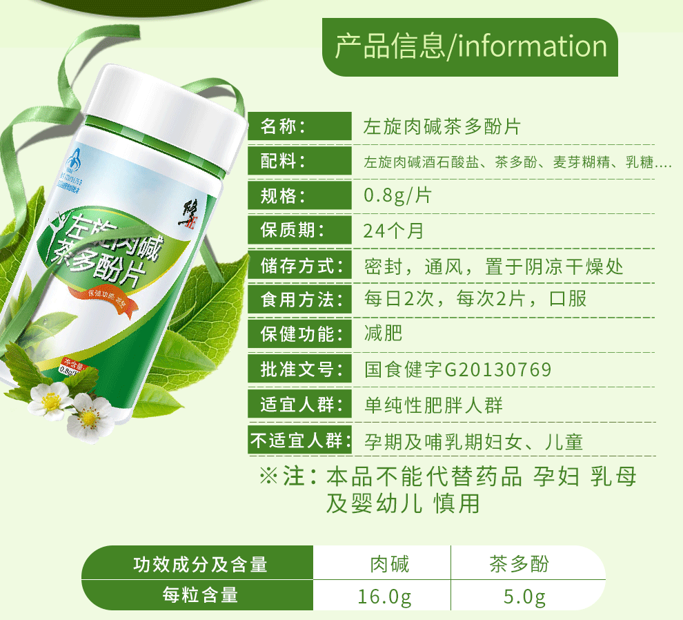 Correction L-Carnitine Tea Polyphenol Tablets Weight Loss Products for Men and Women L-Carnitine Weight Loss 5 Bottles Curved Pack
