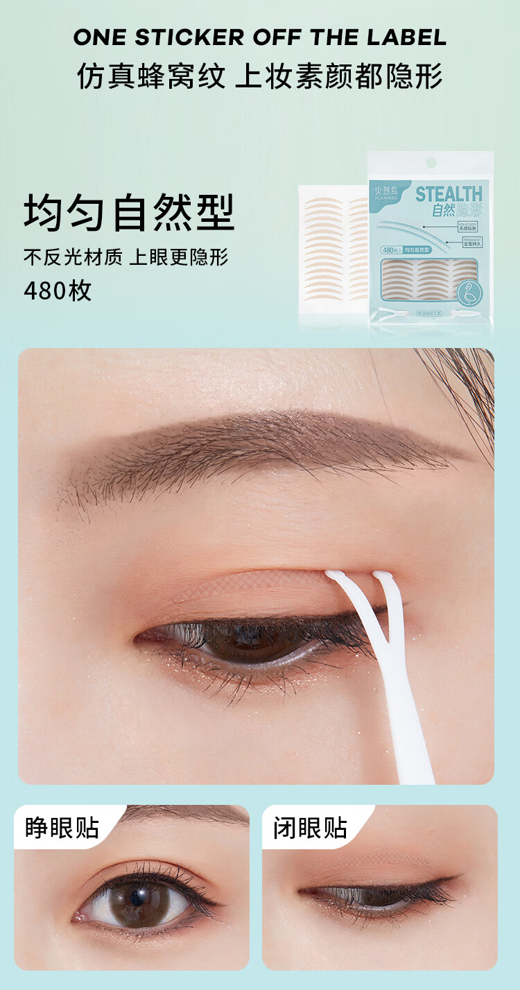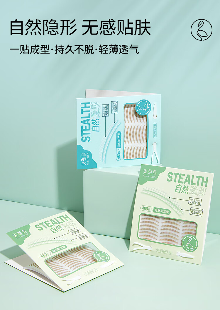 Flamingo double eyelid stickers, invisible and transparent beauty stickers, naturally invisible and non-reflective, double eyelid stickers with good viscosity, beauty tools, transparent double eyelid stickers, wide, 50 pairs