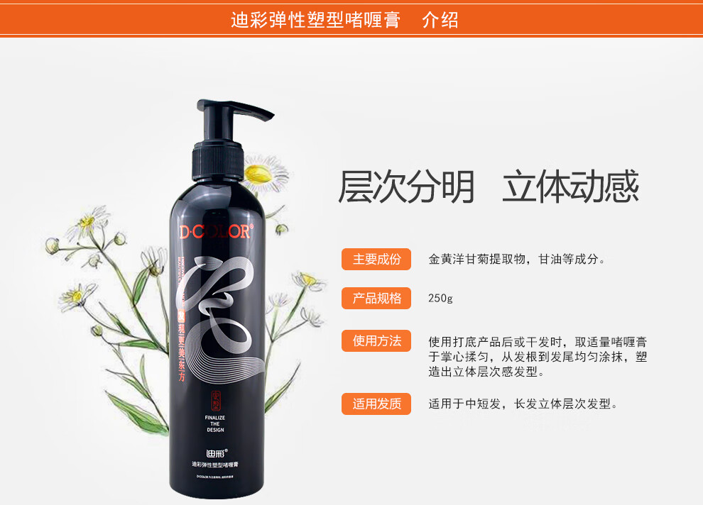 Dicai Elastic Sculpting Gel 250g/bottle, three-dimensional and dynamic, smearable, medium-styling, 250g, 2 bottles