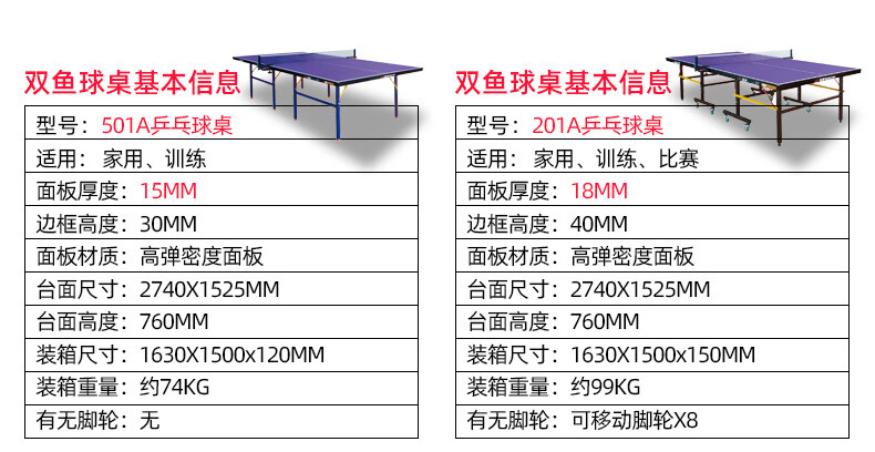 Pisces table tennis table table tennis hall indoor home training competition standard table tennis case foldable with rollers 201A