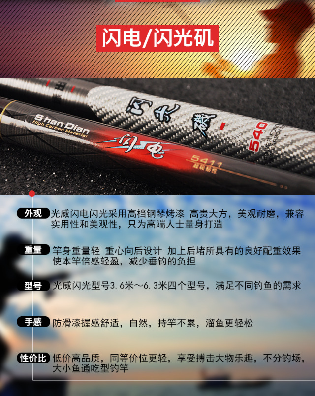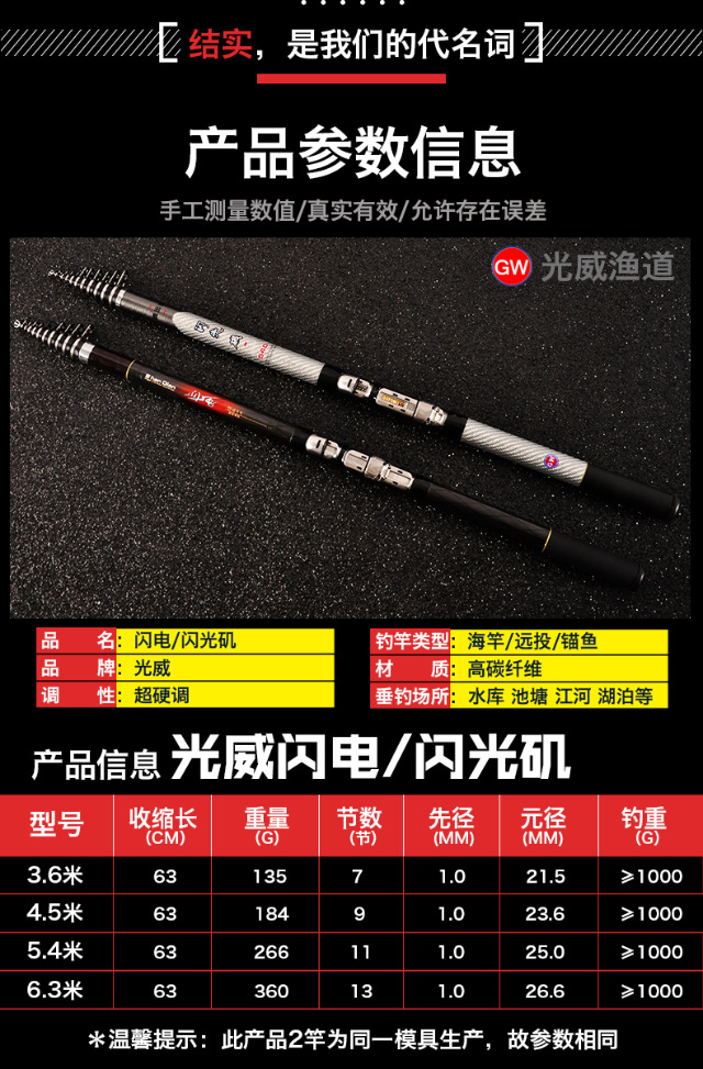 Guangweiji fishing rod 3.6/4.5/5.4/6.3 meters lightning flash Ji carbon fishing rod hand and sea dual-use Jiji rod set (4.5 meters + Guangwei 11 bearing fishing reel)