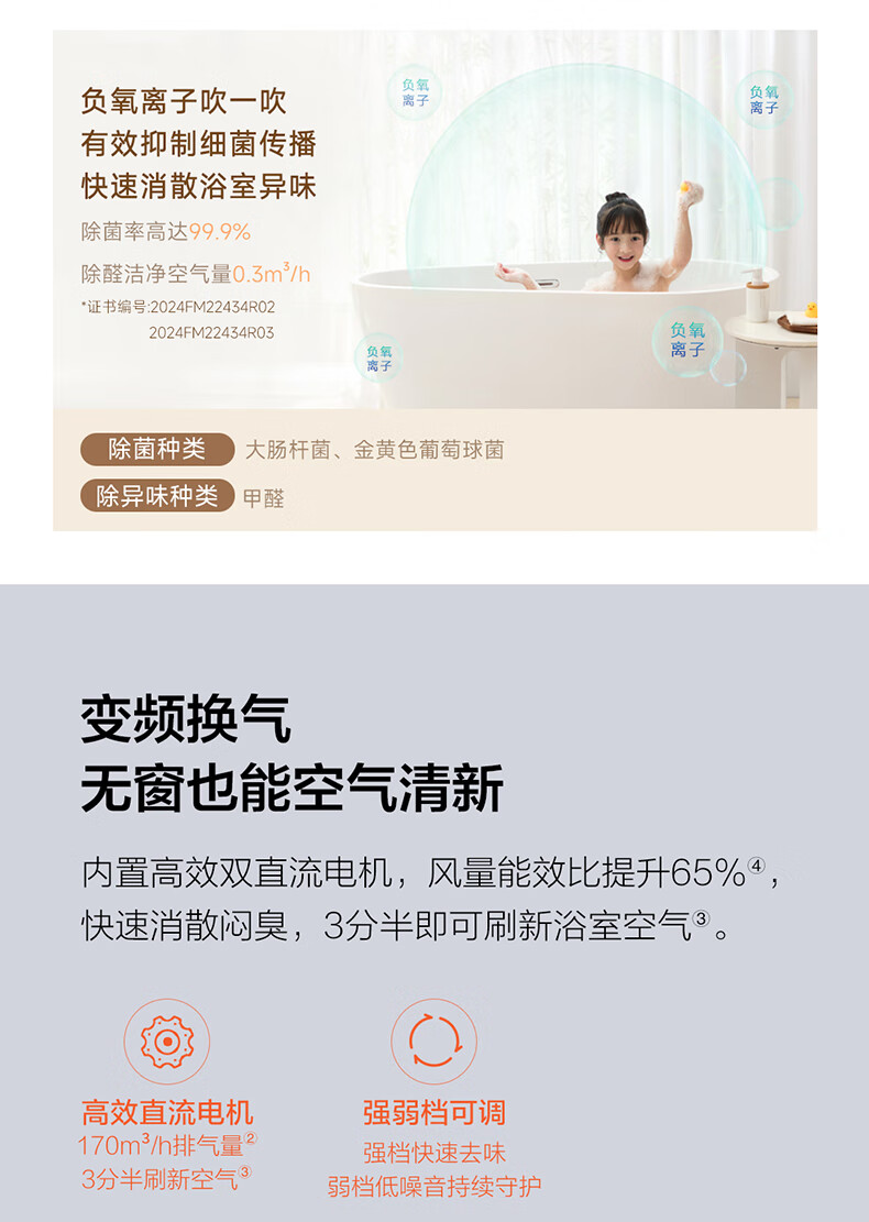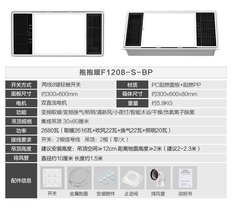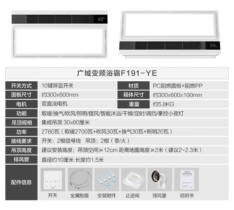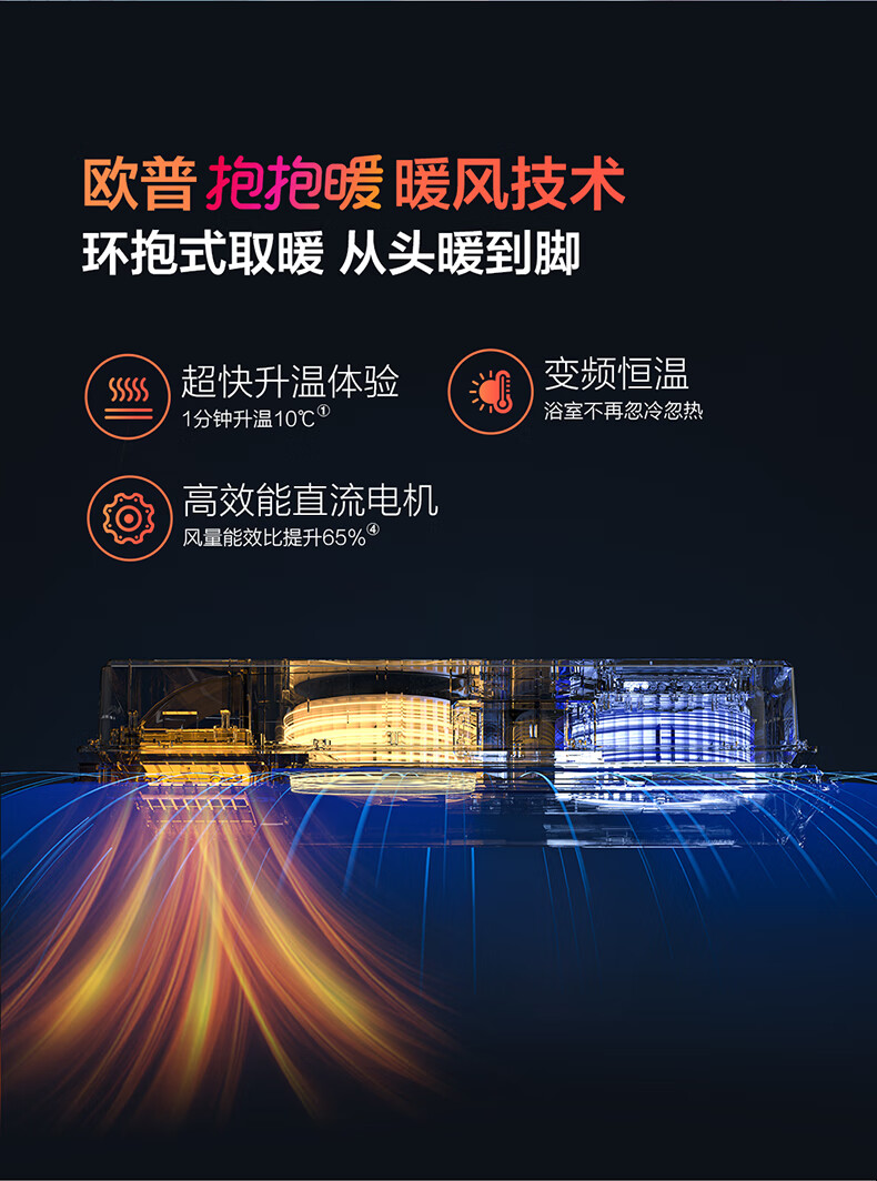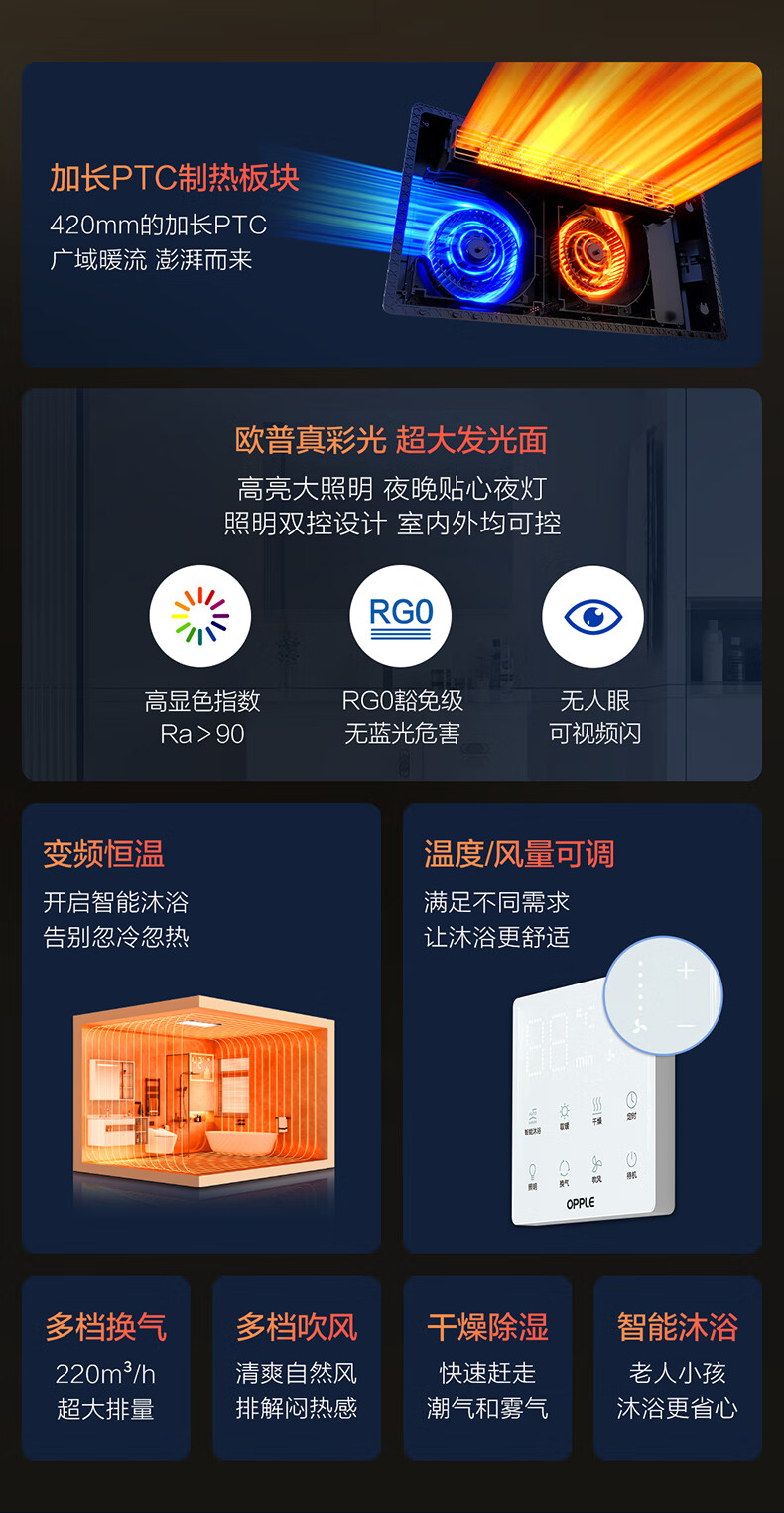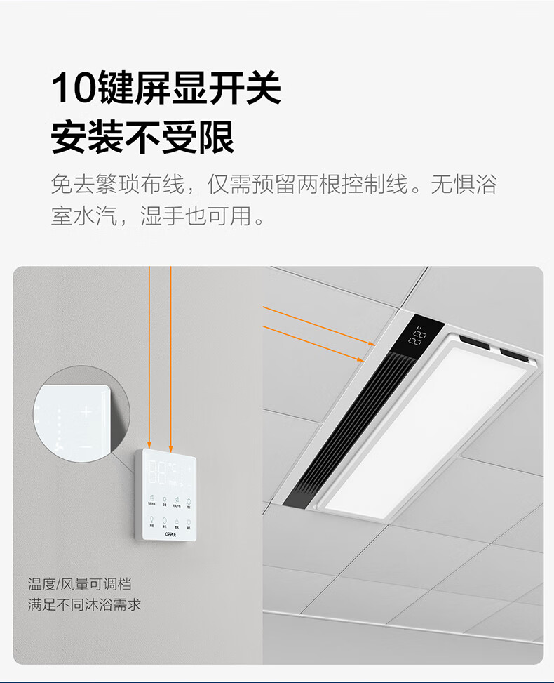 Opple Lighting (OPPLE) DC variable frequency constant temperature air heater bath heater heating lamp lighting and exhaust integrated toilet bathroom heater integrated type A graphene strong thermal conductivity | negative ion sterilization