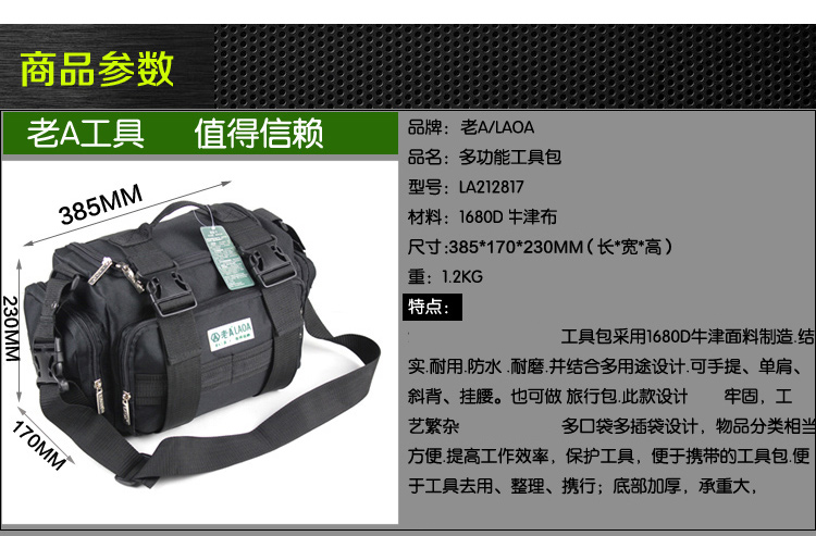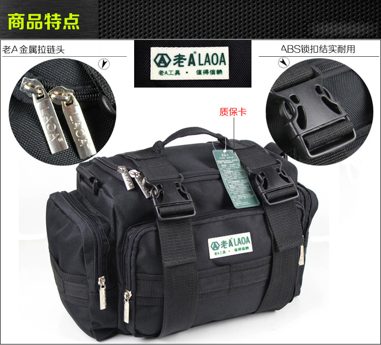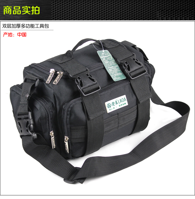 LAOA double-layer thickened electrician repair tool waist bag tool bag tool bag repair bag shoulder electrician bag 15 inches 15-inch square multi-functional repair bag LA212817