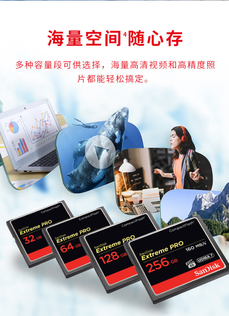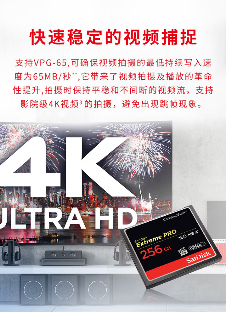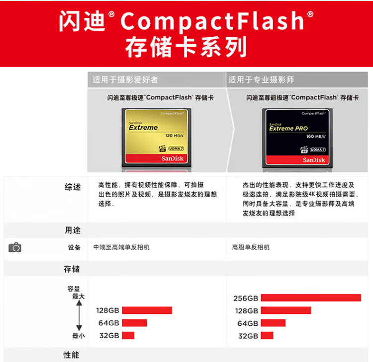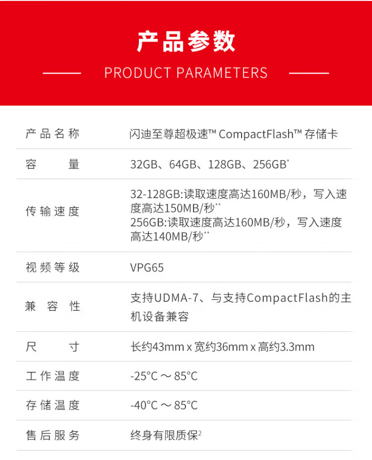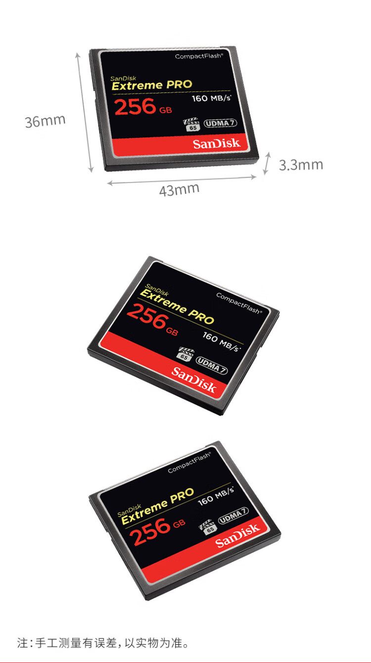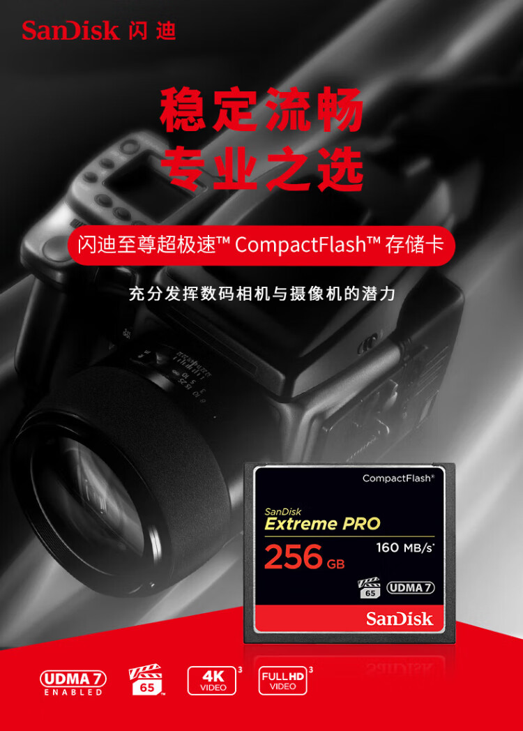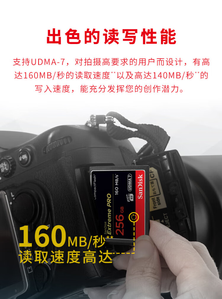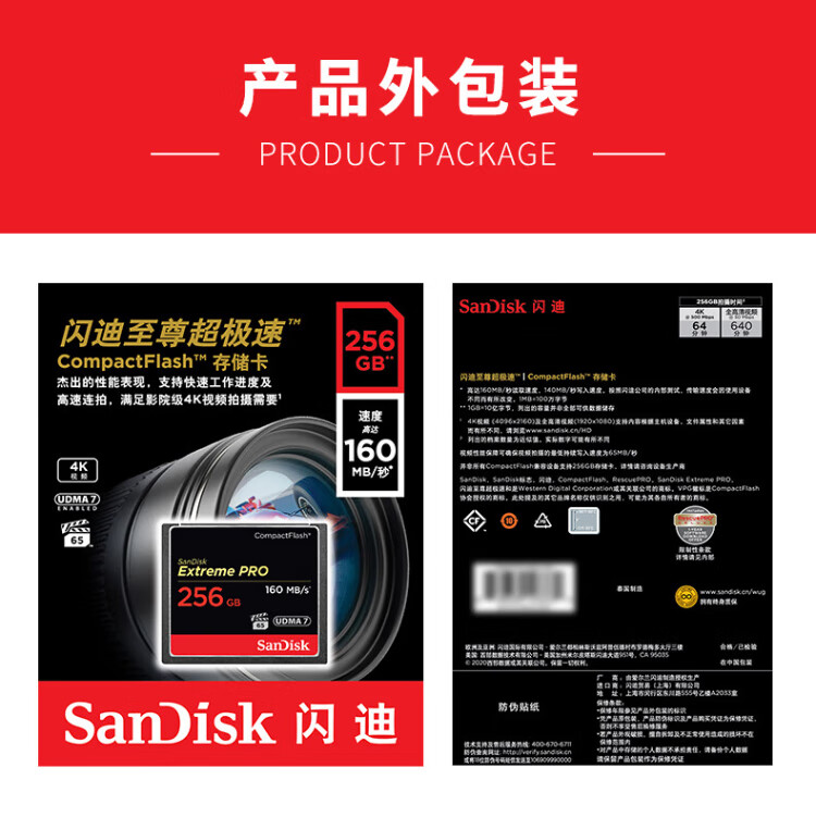 SanDisk 256GB CF (CompactFlash) memory card 4K 3D video UDMA-7 ultra-fast camera memory card reading speed 160MB/s writing speed 140MB