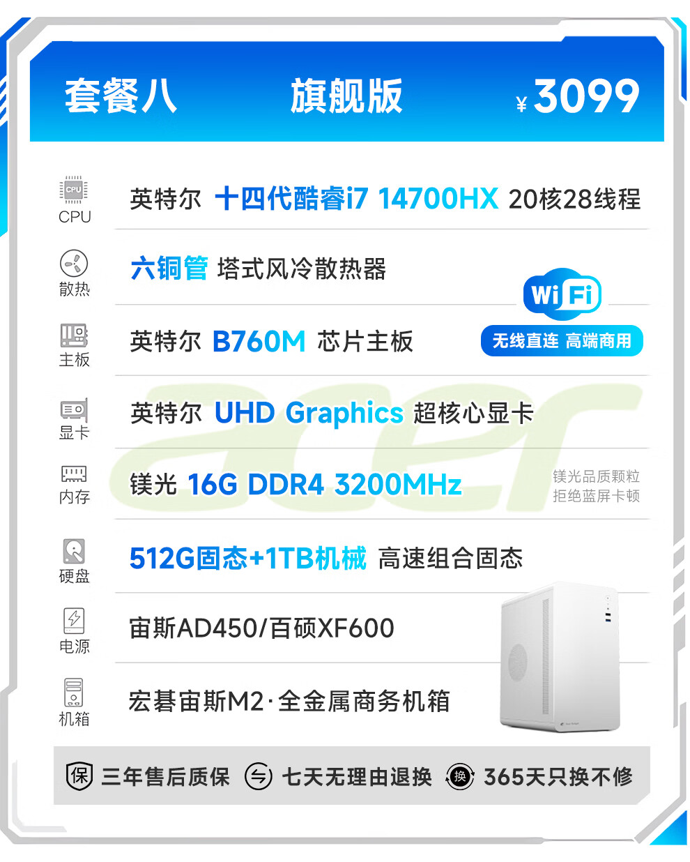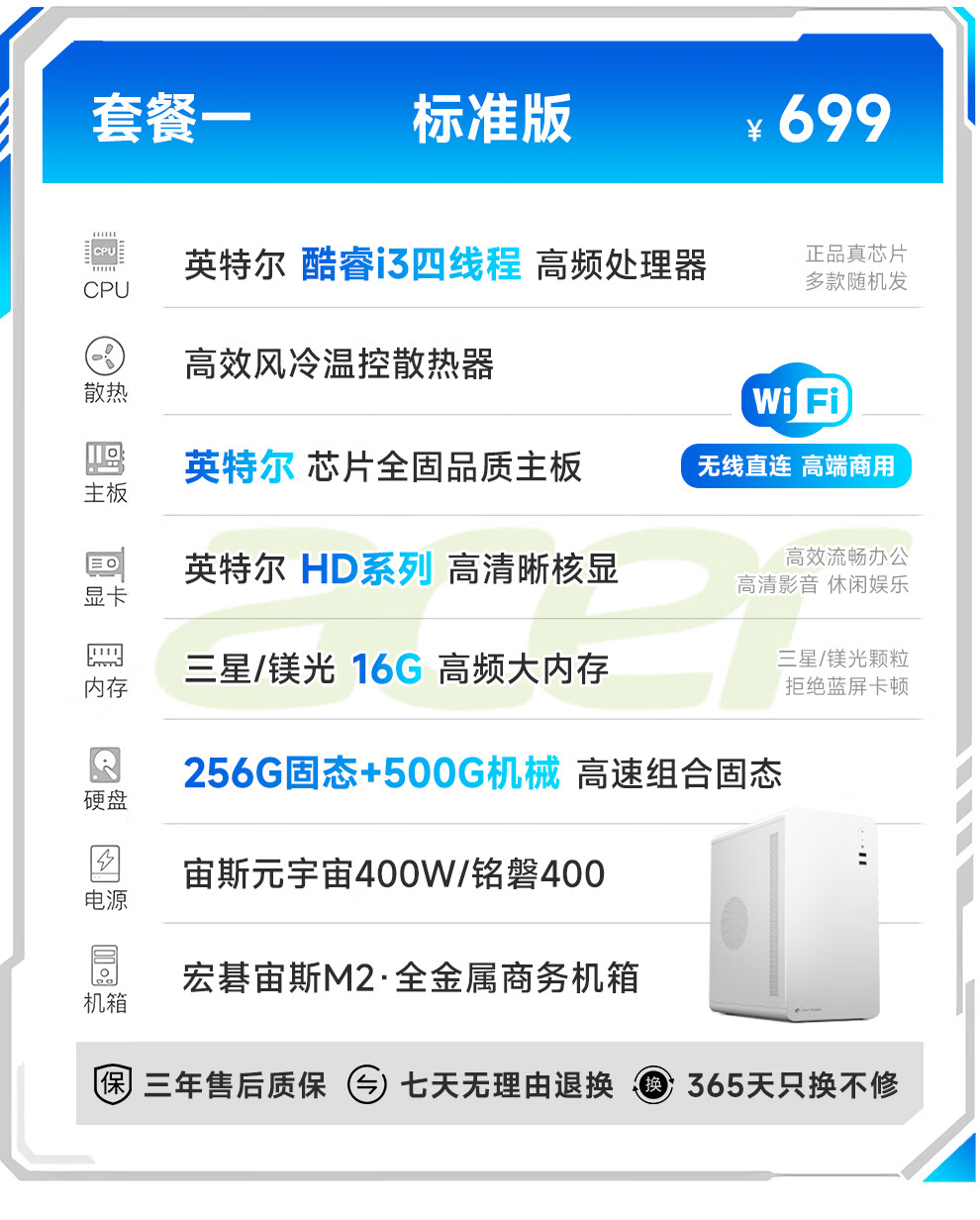 Navigator/Acer 14th generation Core i7 desktop computer host i5i3 enterprise office purchase commercial game home chicken e-sports DIY assembly computer complete set Core i3 four-thread/16G/756G/WiFi efficient office