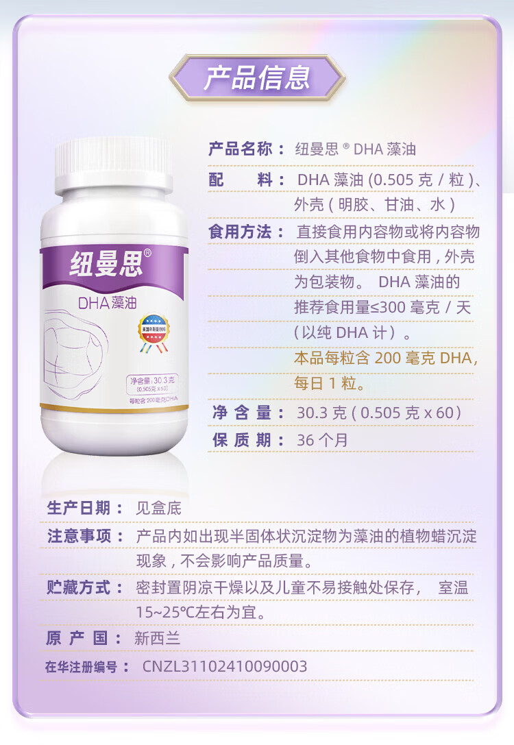 Nemans (formerly known as Newmans) New Zealand imported seaweed oil DHA 60 capsules for adults