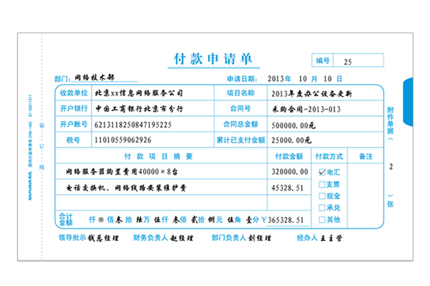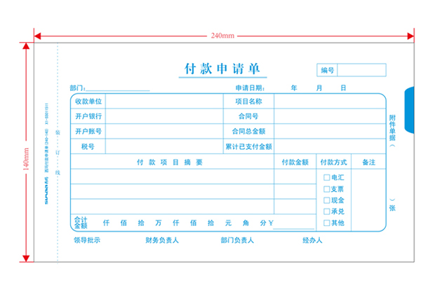 SIMAA payment application form, loan approval expense reimbursement document, financial special general accounting voucher paper, 240*140mm, 50 pages/book, 10 books/pack