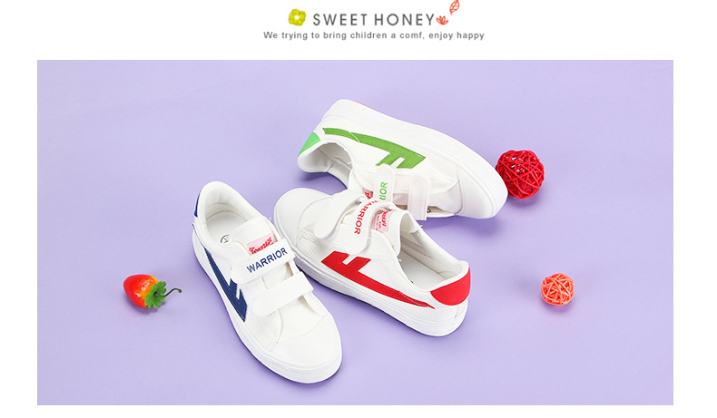 Huali children's shoes 2026 new autumn boys and girls sneakers fashionable Velcro small white shoes small, medium and large children's canvas shoes white and red 35 shoes inner length about 22cm