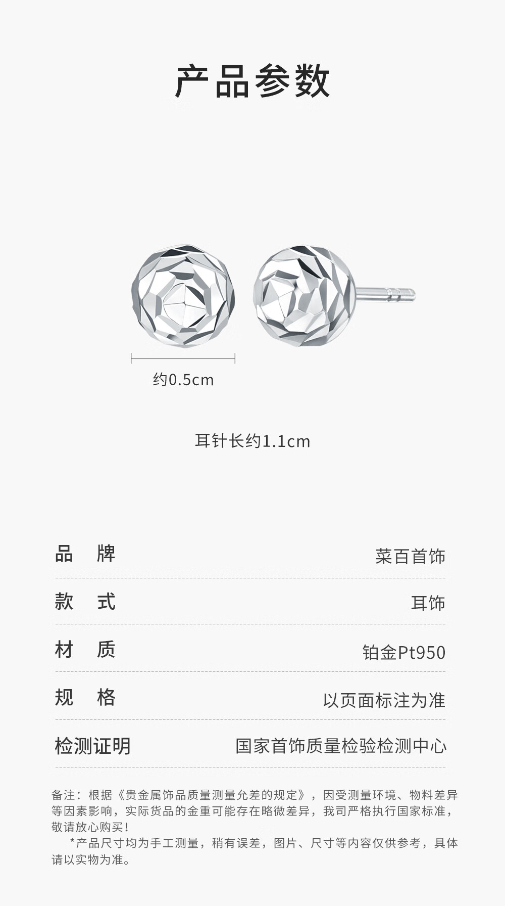 Caibai Jewelry Platinum Earrings Pt950 Fashionable Simple Earrings Women's Earrings Price BJ Platinum About 1.12g