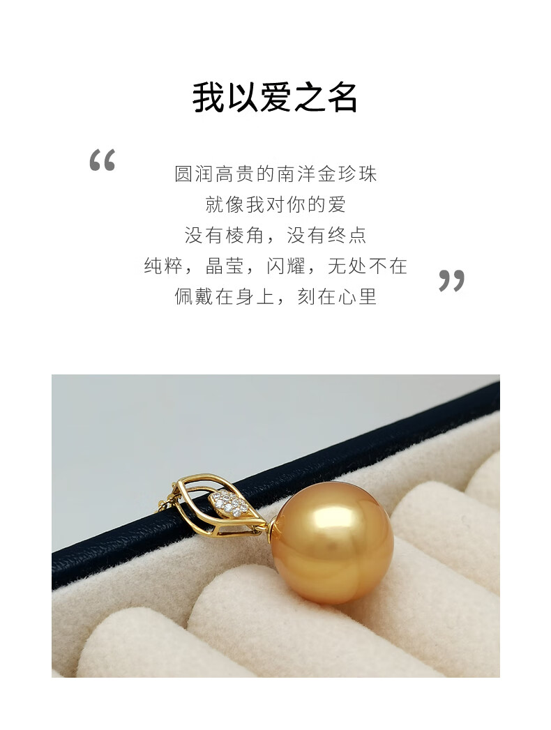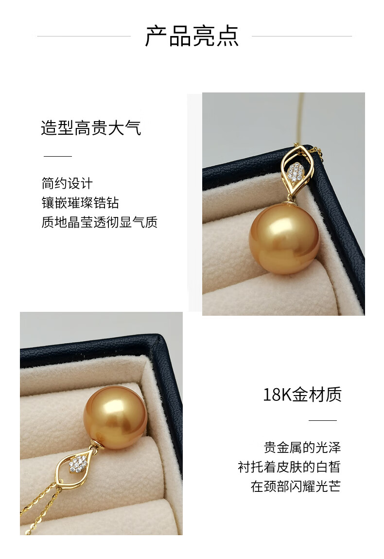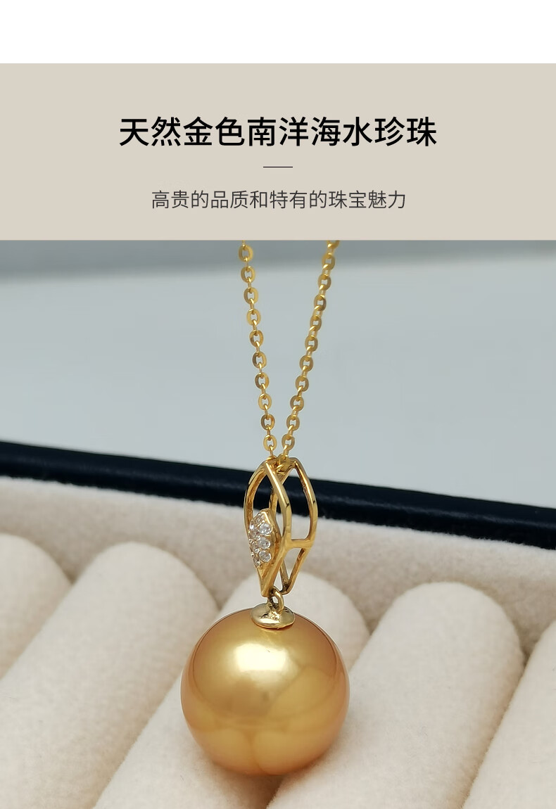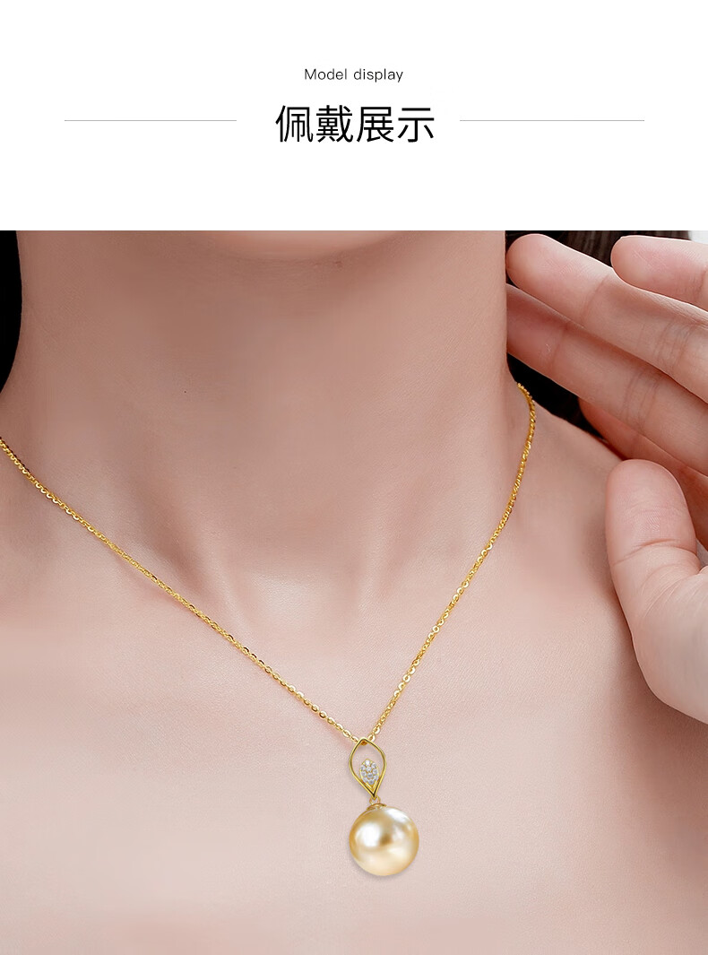 Haitong South Sea gold bead pendant 18K gold holder gold leaf seawater pearl necklace single round golden clavicle chain for women 12-13mm almost flawless