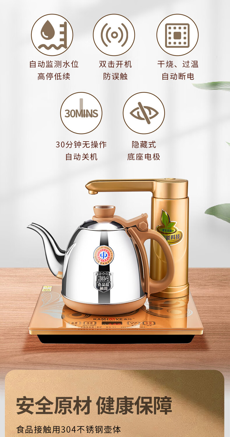 KAMJOVE fully automatic water filling electric kettle tea table kettle thermal insulation integrated water boiling tea set constant temperature electric tea stove V1 fully automatic rotating water filling